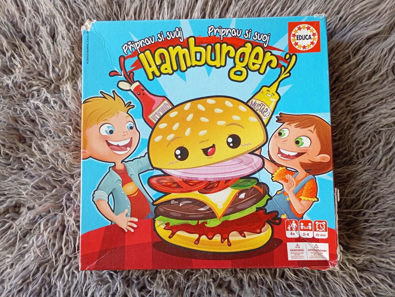 Desková hra Hamburger trvá cca 30–45 minut a baví jak děti, tak dospělé. Funguje trochu na bázi pexesa – je potřeba sledovat, jaké ingredience ostatní hráči odhalují, abyste věděli, kam sáhnout, až na vás přijde řada. Vyhrává ten, kdo jako první nashromáždí všechny ingredience na svůj hamburger.