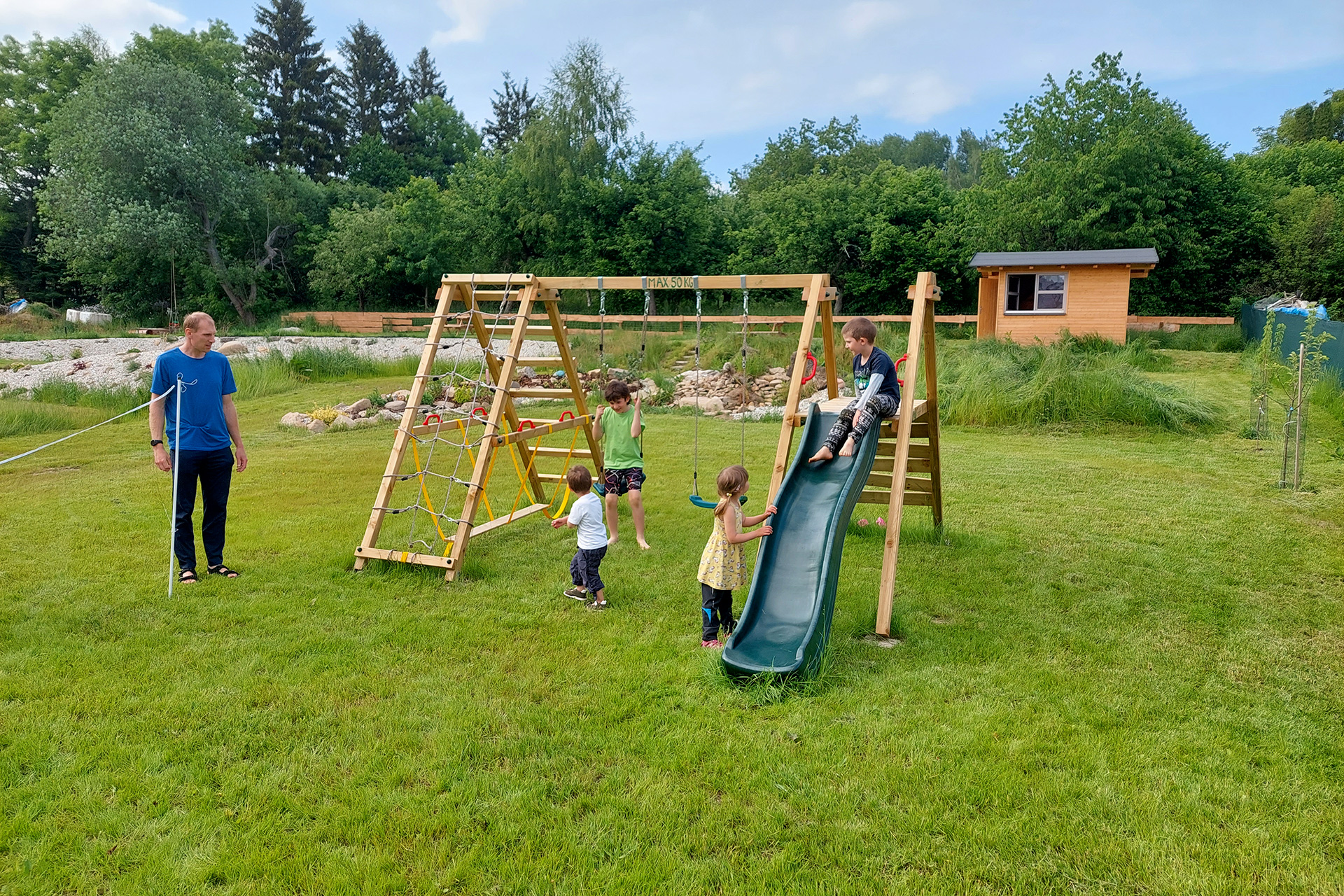 Velký apartmán navíc nabízí saunu a fitness koutek, což potěší každého, kdo si chce po dni stráveném v přírodě dopřát trochu wellness nebo aktivního pohybu pod střechou. Společná zahrada s posezením a ohništěm pak zve k večernímu grilování nebo posezení u ohně.