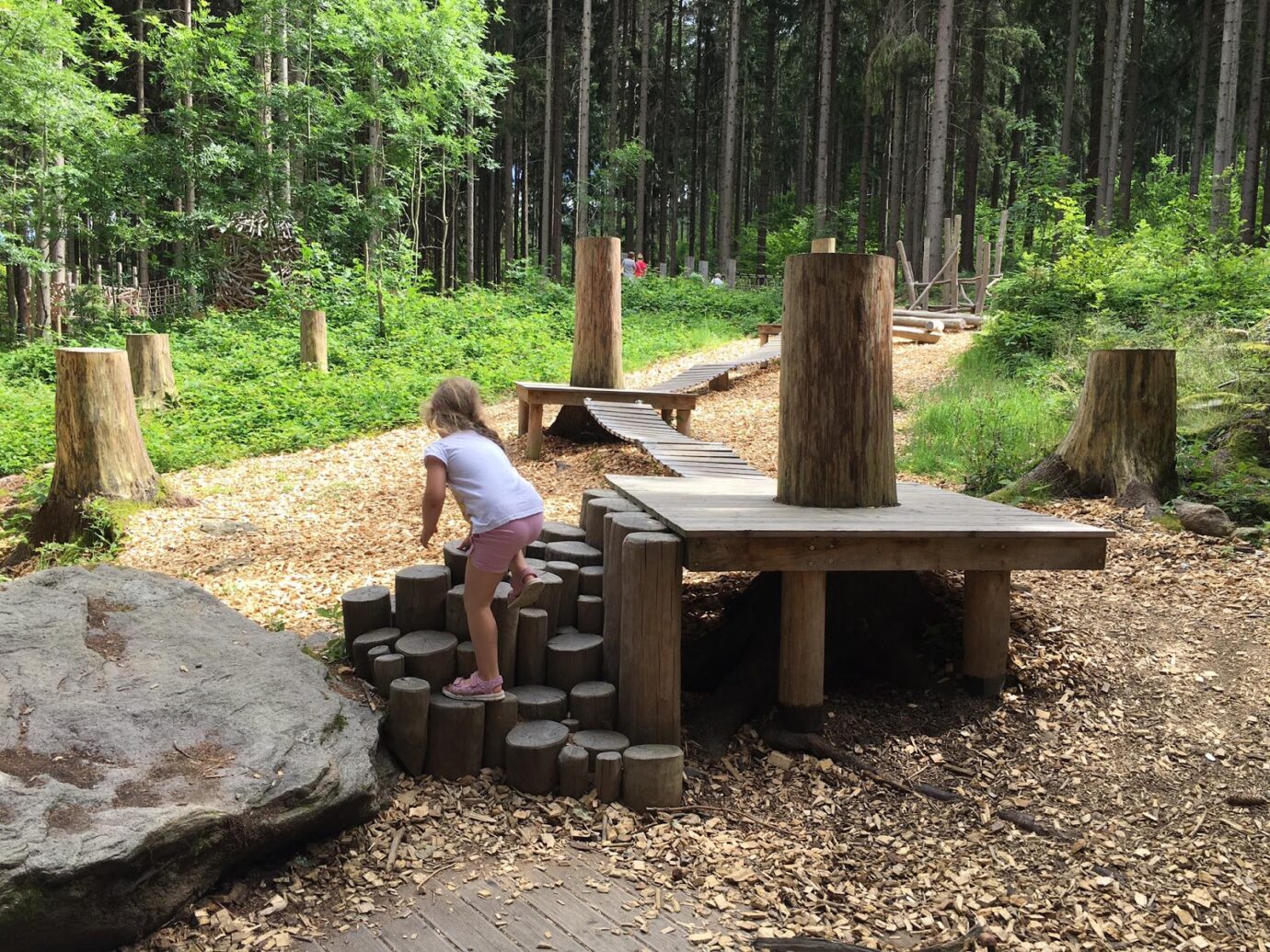 Areál lesních her jako venkovní hřiště plné zábavy