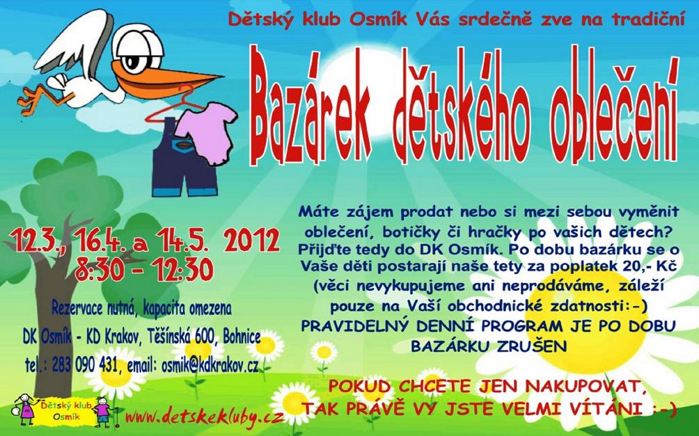 Přijďte tedy do DK Osmík. Po dobu bazárku se o vaše děti postarají naše tety za poplatek 20,- Kč.