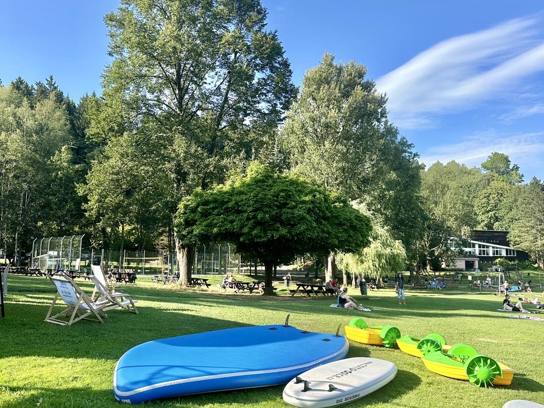 V areálu kempu jsou tenisové kurty a nohejbalový kurt, pestré minigolfové hřiště, oblíbené beachvolejbalové hřiště u Kiosku Na Pláži. K zapůjčení jsou zde horská kola, elektrokola a koloběžky. Půjčovna vodních sportů se nachází přímo na pláži u tobogánu. Najdete tu také několik venkovních stolů na stolní tenis. Pro děti je zde tobogán, skákací hrad, trampolína a dětské hřiště.