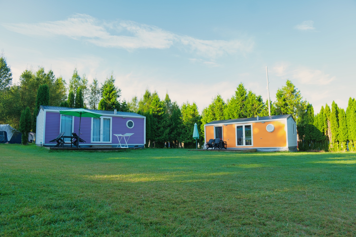 Tři moderní mobilní domy jsou situovány na nejhezčích místech kempu. Díky bezpečnému elektrickému vytápění poskytují pohodlí i v chladnějších měsících a jsou ideální volbou pro rodinnou dovolenou v jakémkoli ročním období. Nacházejí se v blízkosti hlavních atrakcí kempu, včetně koupaliště a restaurace.