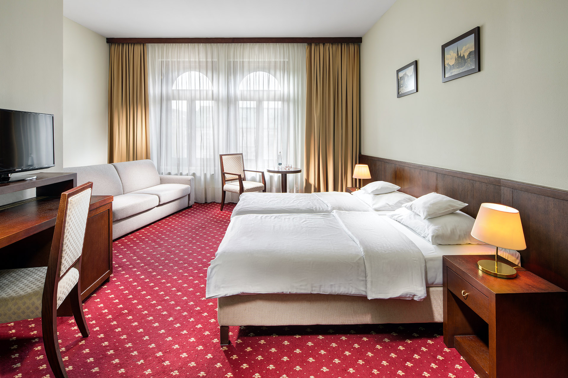 Pokoje jsou citlivě zrekonstruované, některé z nich se nacházejí v historické věžičce a nabízejí autentický zážitek s výhledem na centrum Liberce. K dispozici jsou také salonky pro menší akce a velký sál pro až 440 hostů. Hotel pravidelně hostí firemní večírky, školení i svatby – a to vždy s důrazem na bezchybný průběh a vysoký standard služeb. Díky bezbariérovému přístupu, možnosti ubytování se psem a bezplatnému Wi-Fi je hotel vhodný pro všechny typy návštěvníků.