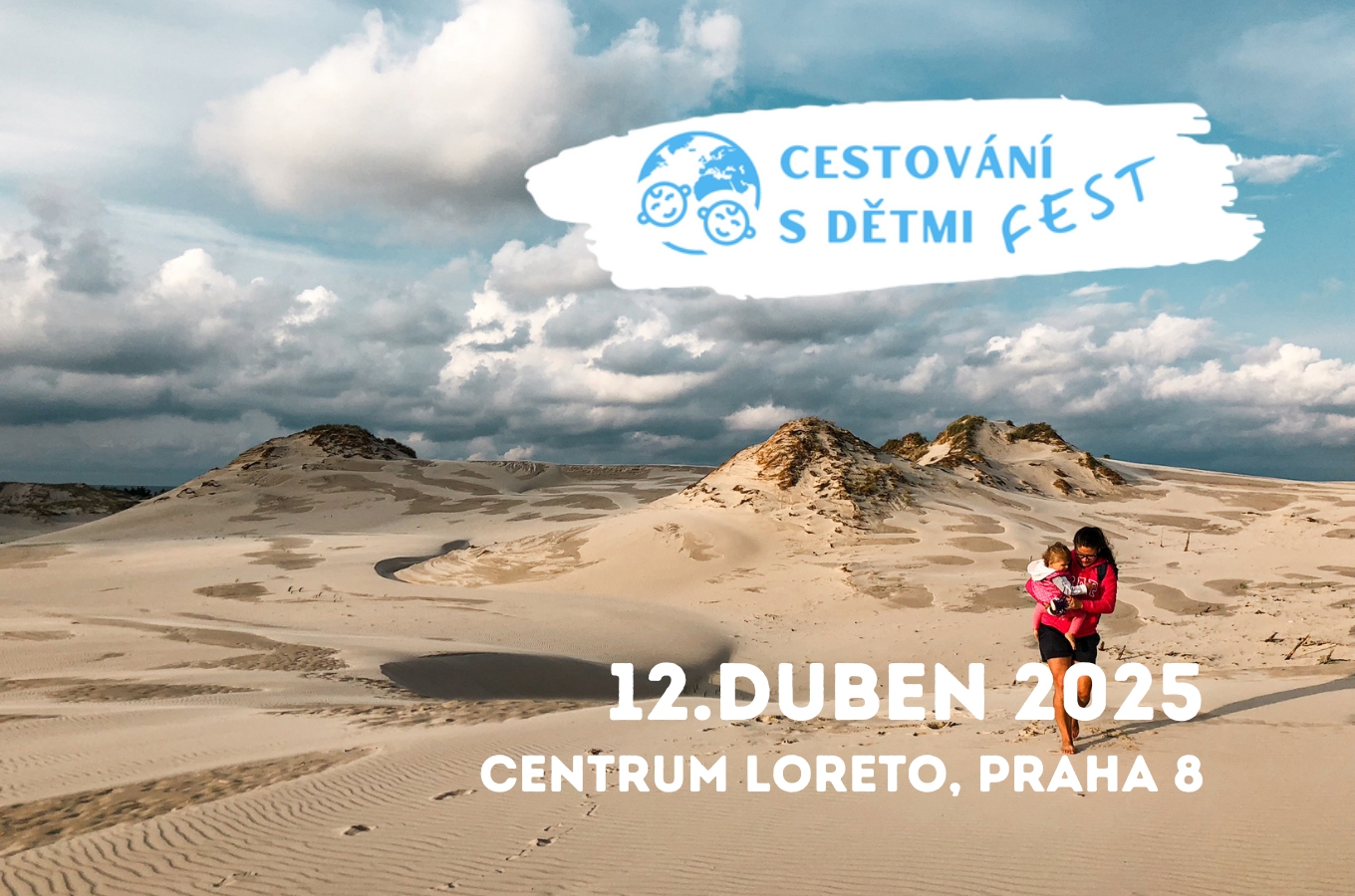 Přijďte 12. dubna 2025 na „Cestování s dětmi FEST „– čtvrtý ročník festivalu pro každou rodinu, ať už se na cestování teprve chystáte, nebo máte za sebou spoustu dobrodružství. 12. dubna 2025 v Centru Loreto na Praze 8, Libeňský ostrov. Skvělá příležitost poslechnout si naživo inspirativní příběhy od cestovatelských rodin. Zazní témata o cestování v Čechách, po Evropě, ale i třeba v Severní Americe, Novém Zélandu či Jordánsku a další exotice. Dozvíte se tipy, jak ušetřit na cestách, jak na domácí vzdělávání, cestování obytňákem, house sitting, home exchange, jak na levné letenky a vše kolem cestování.