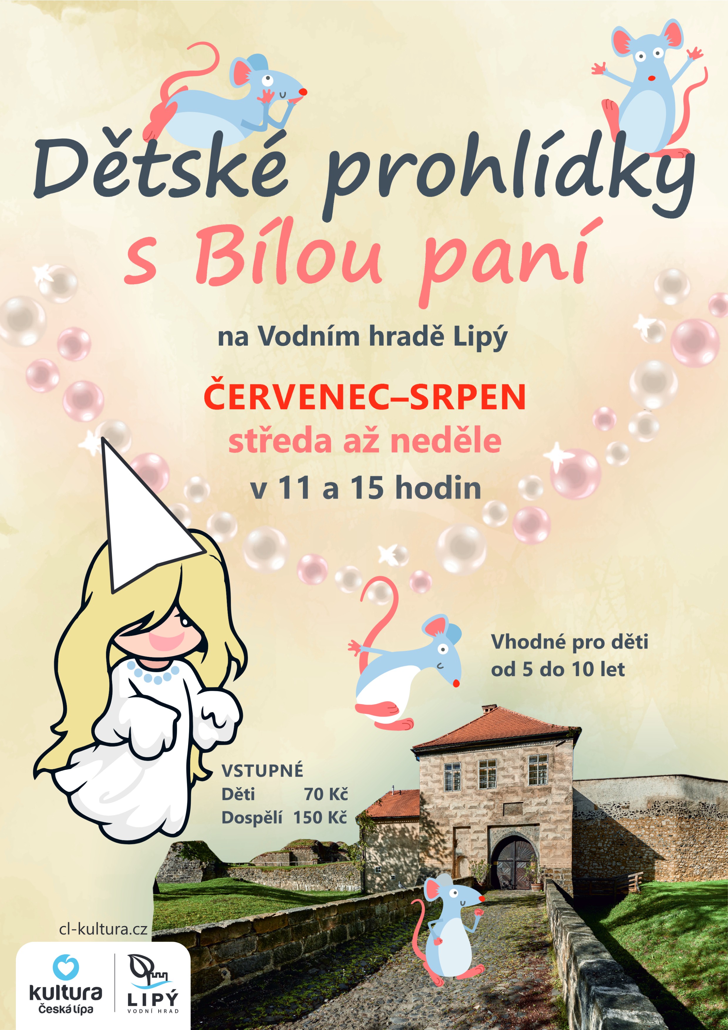 Přijďte s dětmi prožít jedinečné Dětské prohlídky s Bílou paní na Vodním hradě Lipý v České Lípě! Čeká je nezapomenutelná letní prohlídka plná příběhů, hádanek a strašidelných tajemství – a to vše s průvodkyní, kterou jen tak nepotkáte… samotnou Bílou paní!