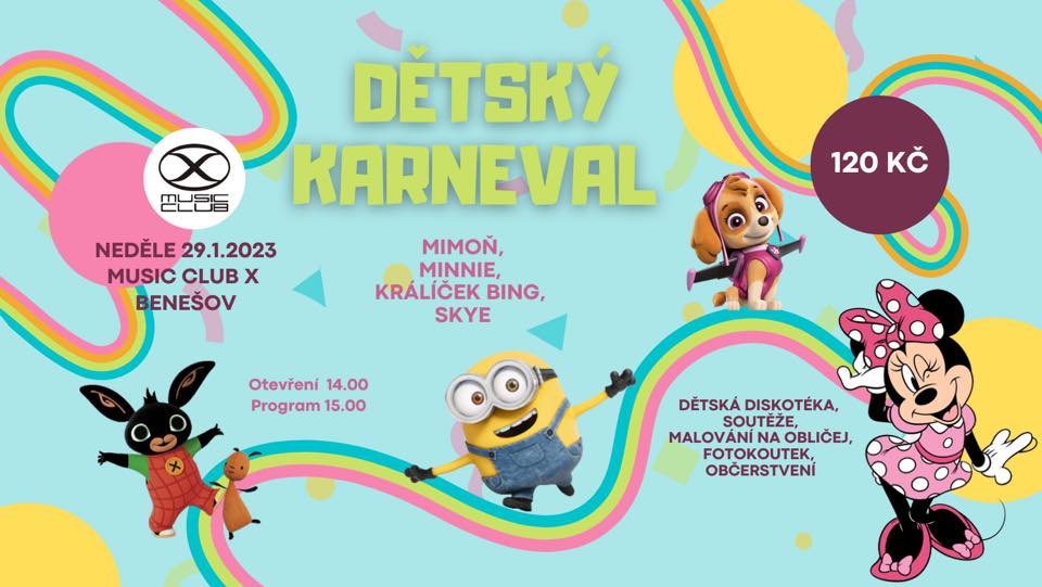 Rádi bychom Vás pozvali dne 29.1.2023 na Dětský karneval v Benešově – Music Club X.