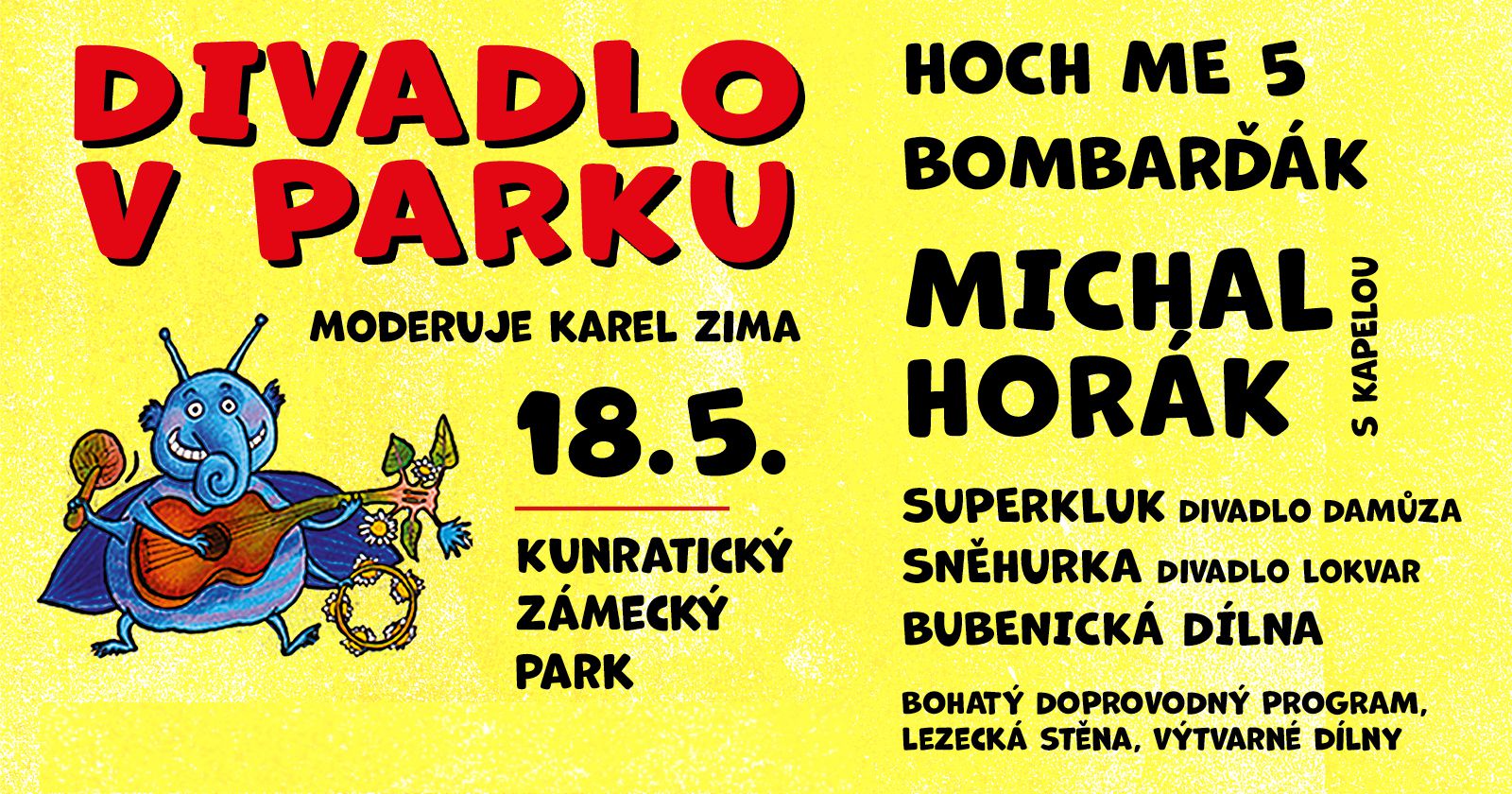 Nejlepší festival pro celou rodinu. Celý den divadla a koncerty. Moderuje známý herec Karel Zima. Jediný jarní koncert Michala Horáka v Praze! Bohatý doprovodný program – lezecká stěna, kladka mezi stromy, hasiči, malování na obličej, výtvarné dílny, herní stanoviště a mnoho dalšího!