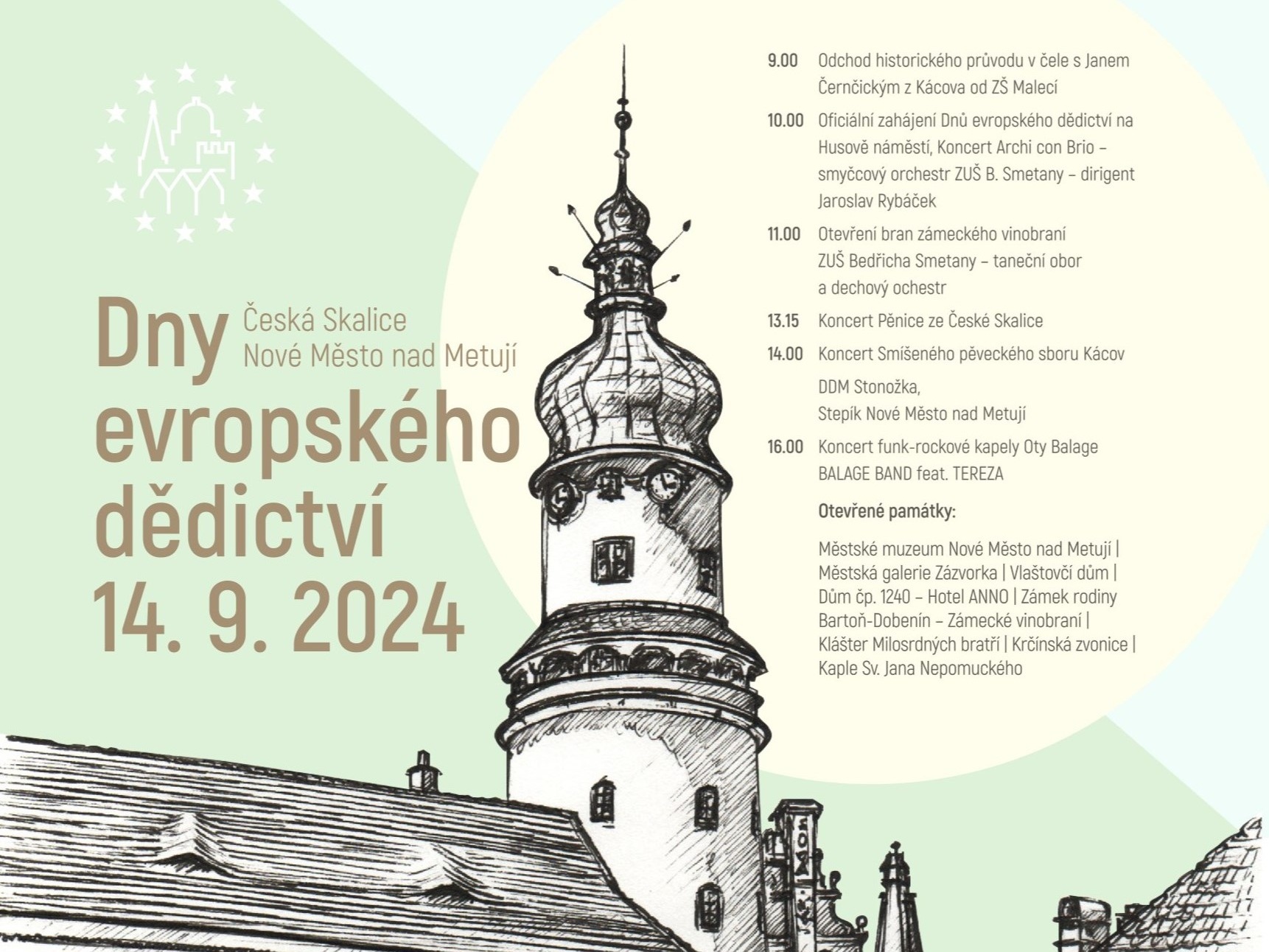 Nové Město nad Metují pořádá 14. 9. tradiční akci Dny evropského dědictví. Tradiční akce na závěr turistické sezóny – Dny evropského dědictví v Novém Městě nad Metují