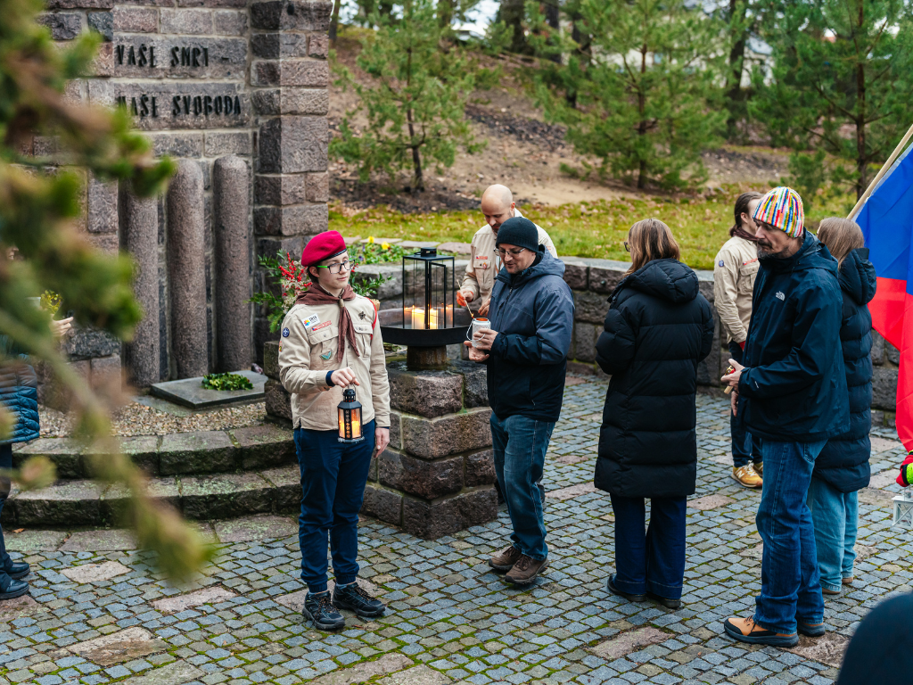 Program vyvrcholí v neděli odpoledne venku u pomníku, kdy přípravné oddělení chlapeckého sboru BONIFANTES od 15 hodin vystoupí s vánočními písněmi. Následně skauti ze střediska Šestka z oddílu 5 přinesou Betlémské světlo. Pokud si tedy donesete svoji lucerničku nebo svíčku, můžete si symbol míru, lásky, naděje a přátelství odnést domů.