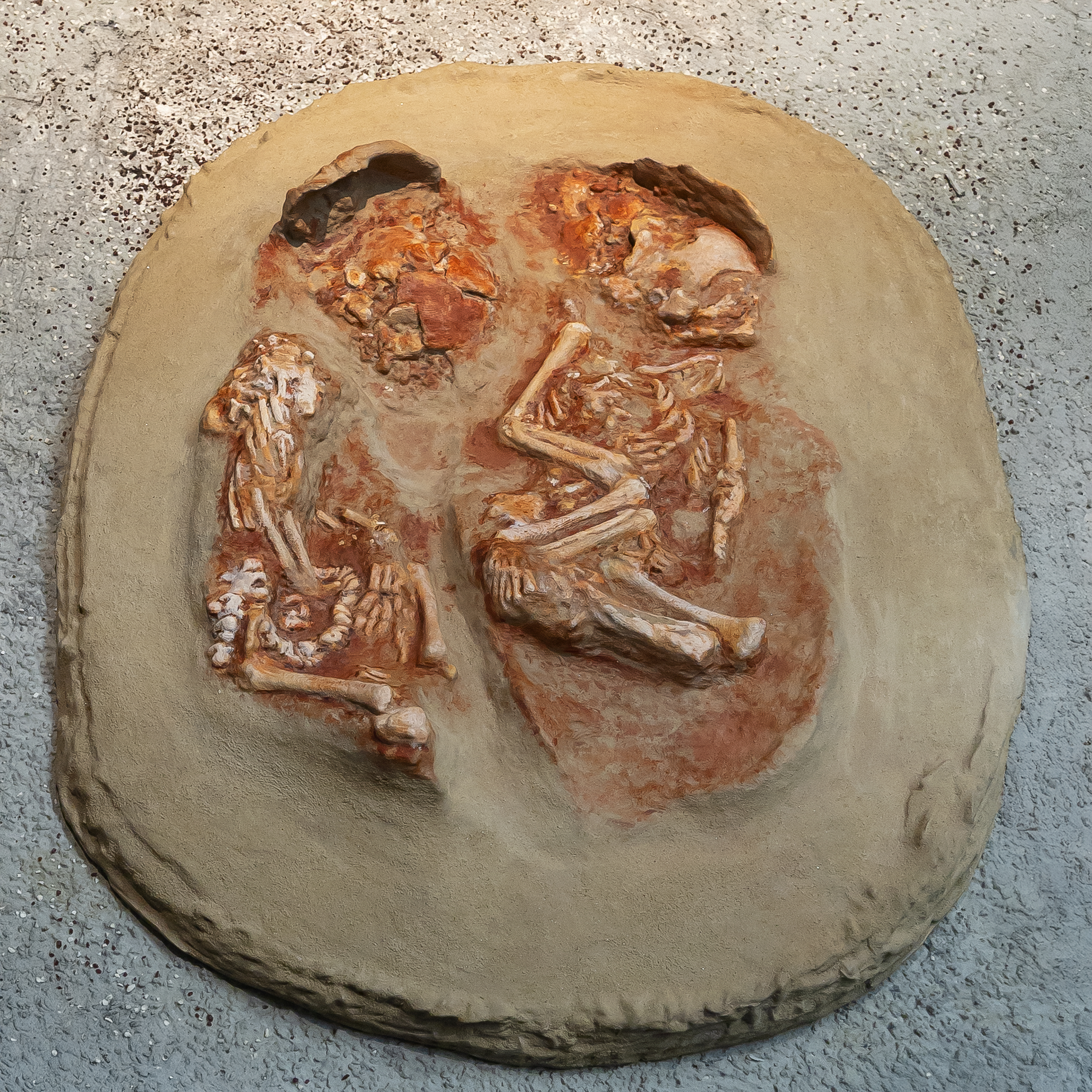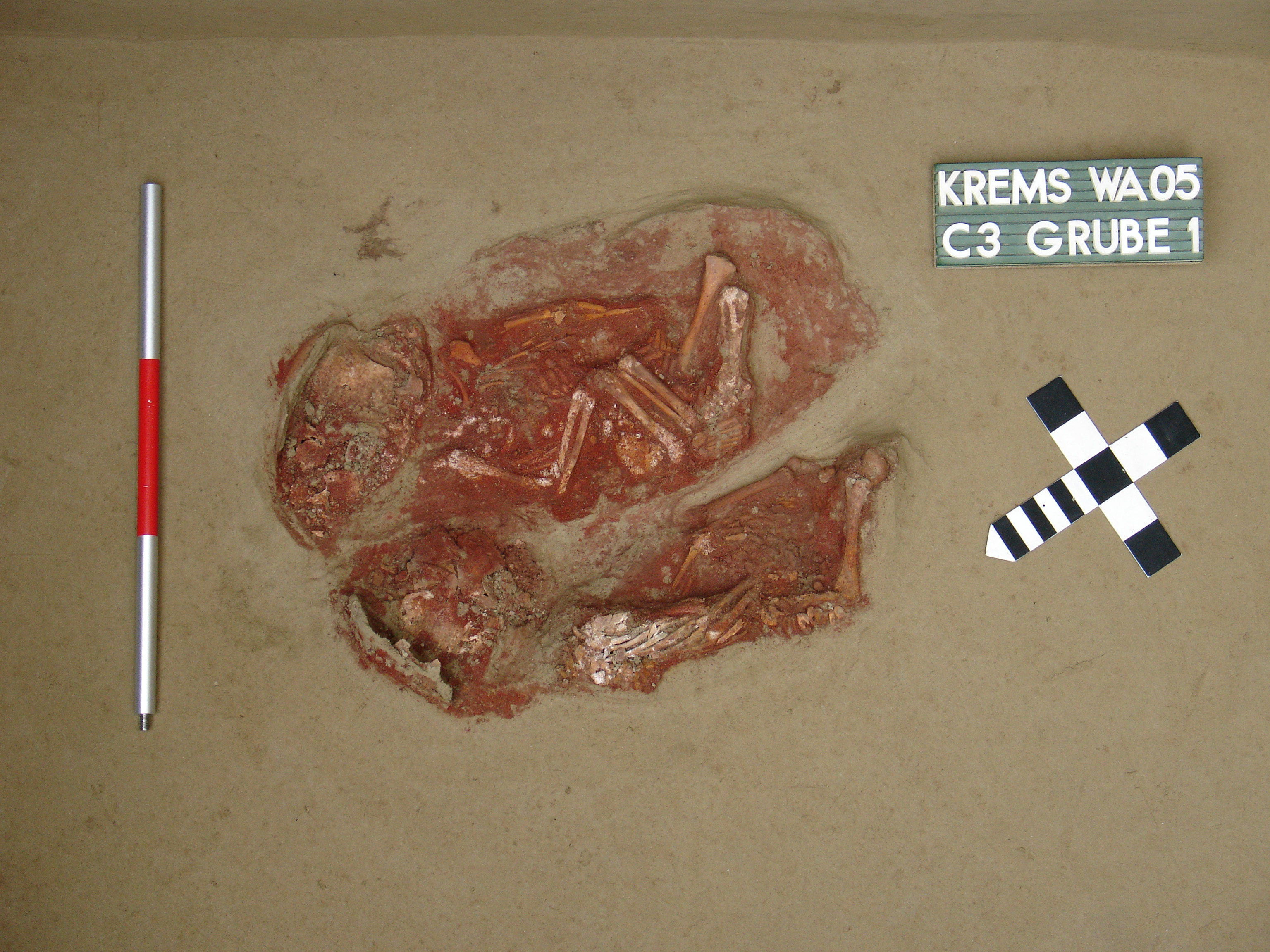 K nejpůsobivějším exponátům patří senzace dvojitého hrobu dvojčat z Krems-Wachtberg. Novorozenci byli před 27 000 lety pohřbeni s okrem a slonovinovými korálky – dojemné svědectví tehdejších pohřebních rituálů. Nedaleko byl nalezen i další pohřeb dítěte – bratranec dvojčat. Všechny tři hroby jsou nyní poprvé vystaveny společně.