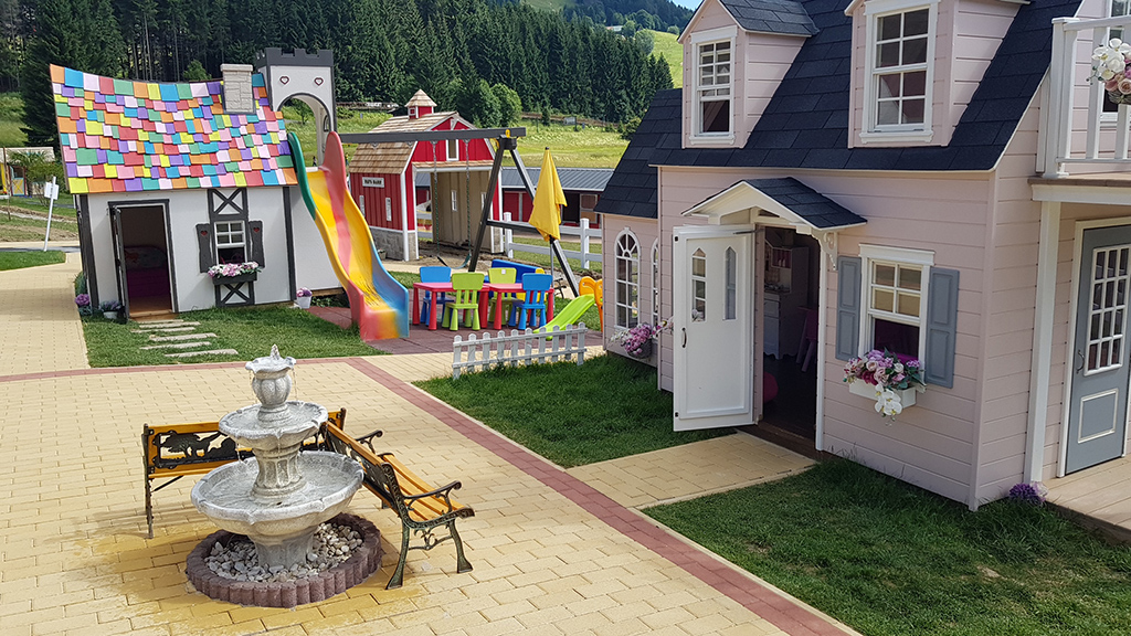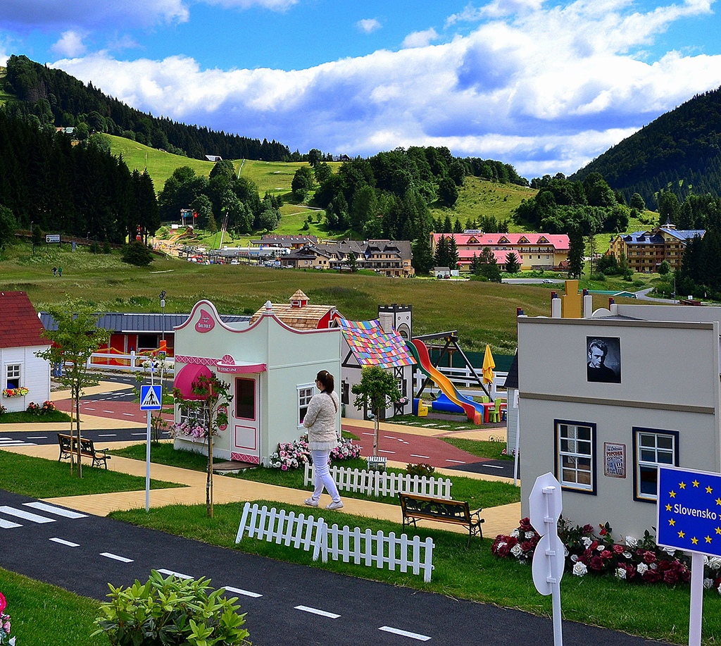 Vydejte se do městečka, kde na vás čeká 23 domů zmenšených tak, aby opravdu zapadly do dětského světa. Interaktivní areál pro rodiny na Donovalech přivítá všechny děti a nabízí prostor pro den plný zábavy a kreativity. Pro kreativce je otevřena galerie, kde můžete stříhat, lepit, malovat, zároveň vystavovat svá díla nebo si je odnést domů. Děti si zde ve vymezený čas mohou nechat pomalovat obličej.