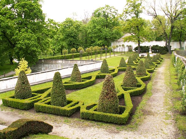 Zámek má dvě zahrady, menší Knížecí zahrada ve francouzském stylu byla původně malou „rajskou“ zahrádkou pražského arcibiskupa Jana Bedřicha z Valdštejna. Ve spodní, anglické části zámecké zahrady stojí pavilon pro Reinerovu fresku. V pavilonu se nachází unikátní cenná freska „Nanebevzetí P.Marie“ od V. V. Reinera a Braunovy sochy Ctnosti, přenesené sem ze zbořeného barokního hospitálu. Dále v zahradě nalezneme okouzlující Sfingový rybník s dvěma barokními sfingami a delfínem z Braunovy dílny. Celý areál parku je vhodným místem pro příjemné procházky a odpočinek.