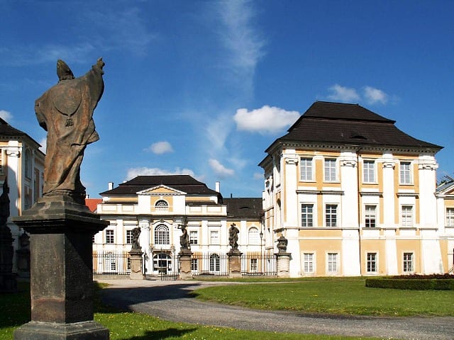 Z náměstí je součástí zámeckého areálu kostel Zvěstování Panny Marie, jehož barokní stavba pochází z počátku 18. století. Má pohnutou novodobou historii, neboť byl dne 10. května 1945 zachvácen požárem, během něhož byla nenávratně ztracena Reinerova i Braunova díla z jeho oltářní výzdoby. Po dílčích opravách dodnes čeká na celkovou rekonstrukci.