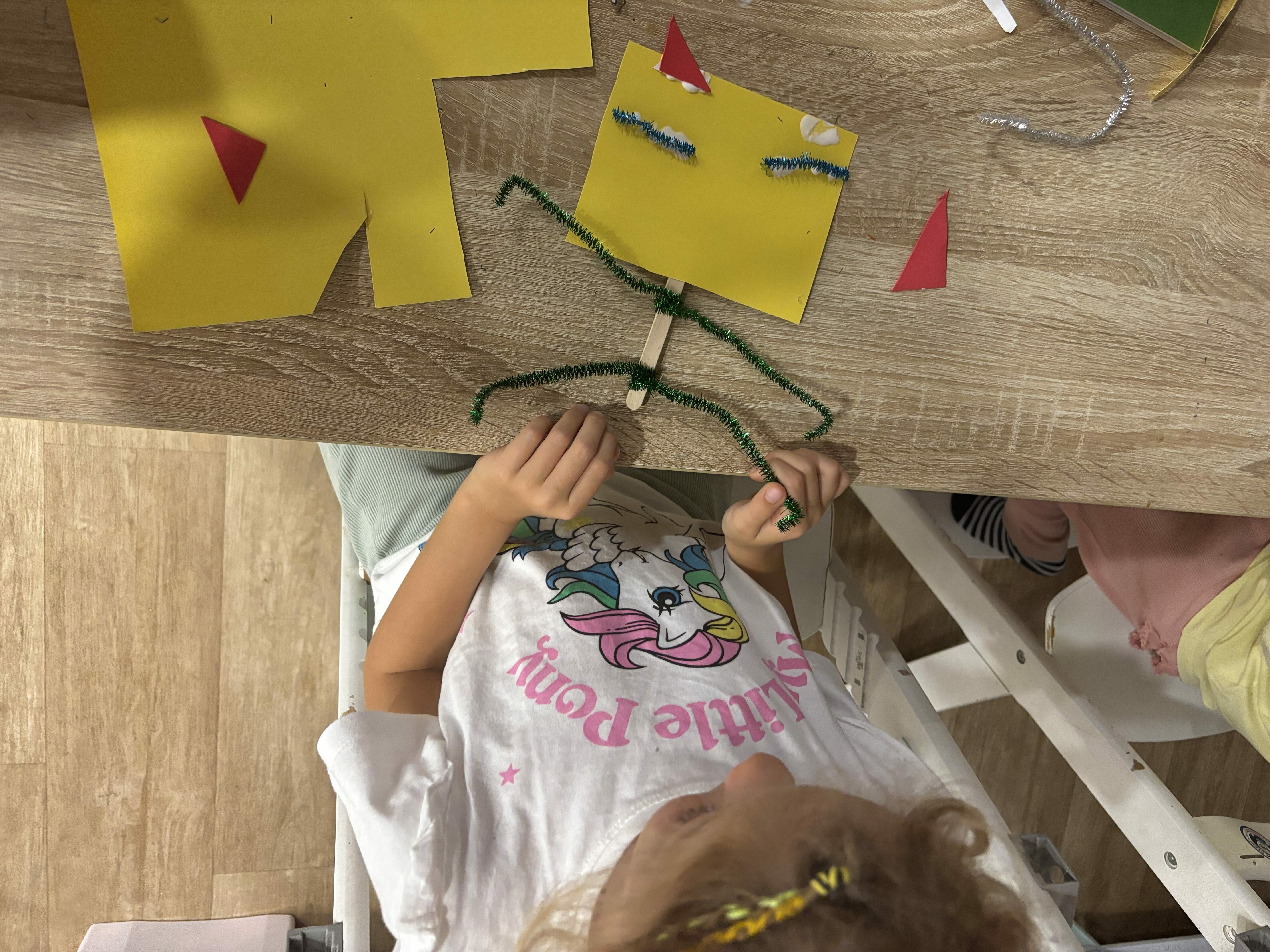 Postup na výrobu Krysoura je jednoduchý. Jako první si připravíme barevnou čtvrtku, ze které vystřihneme obdélník, který bude Krysourova hlava. Potom z druhé čtvrtky vystřihneme dva malé trojúhelníčky, které přilepíme nahoru jako ouška. Následně vystřihneme dva půlkruhy, jako oči. Přilepíme je na obdélník. Vezmeme chlupatý drátek a ten zkrátíme na dvě krátké čárky, které mu nalepíme jako obočí. Pak už jen domalujeme tlamičku a do očí mu přilepíme knoflíky, jako duhovky. Obličej máme hotový a jdeme na tělo. Připravíme si dřívko, které nalepíme lepidlem zezadu na hlavu. Počkáme chvíli, než nám lepidlo uschne a dřívko obmotáme chlupatými drátky, které budou Krysourovy ruce a nohy. Hotovo? Tadááá, Krysour je na světě.