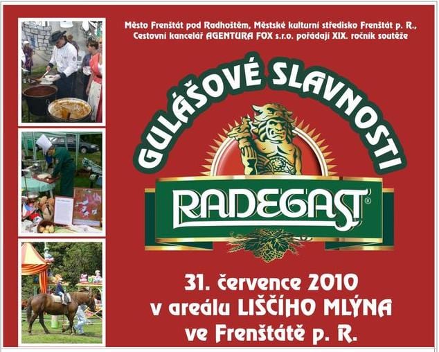 Již 19. ročník tradiční soutěže o nejlepší kotlíkový guláš. Čekají vás nejen voňavé guláše, speciality na grilu, čepované pivo Radegast, míchané nápoje, barmanská show, ale i bohatý kulturní úprogram v podání kapel Kanon, Joe Bar Blues Street, Propolice – The Police Cover Band a Navalentym. Pro děti je připraveno mnoho atrakcí mj. skákací hrad, hřiště, bazén nebo vození na koni. Zajištěna je KYVADLOVÁ DOPRAVA v čase od 11:00 do 19:00 a vstup je zcela ZDRAMA.