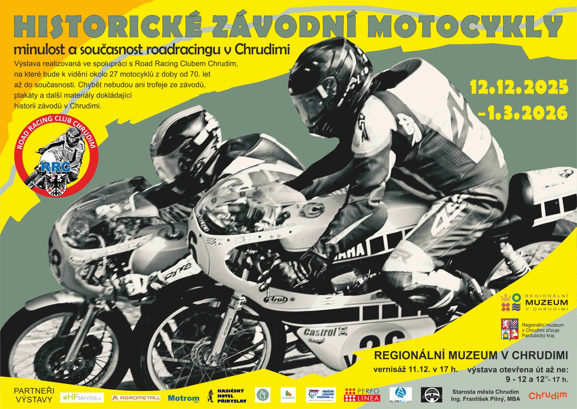 Zveme vás na jedinečnou výstavu věnovanou závodům na přírodních okruzích a jejich tradici v Chrudimi. Ve spolupráci s mladým, ale zkušeným Road Racing Clubem Chrudim představujeme svět rychlosti, odvahy a motorsportu, který se zapsal do historie regionu.