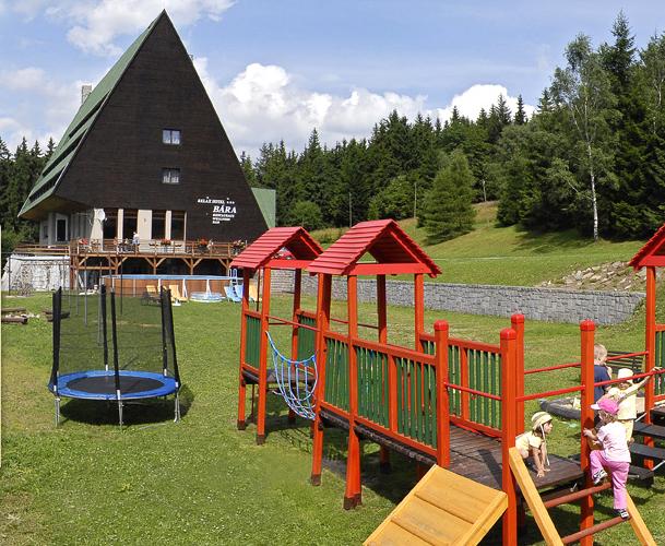Rodiče mohou z terasy při občerstvení sledovat své děti, hrající si na hotelovém hřišti ( pískoviště, skluzavka, trampolína, houpačky ). Nebo mohou využít víceúčelové travnaté hřiště ke společných rodinným hrám. Na recepci lze zapůjčit spoustu zahradních rodinných her. Velký venkovní bazén Vás osvěží při pěkném počasí.