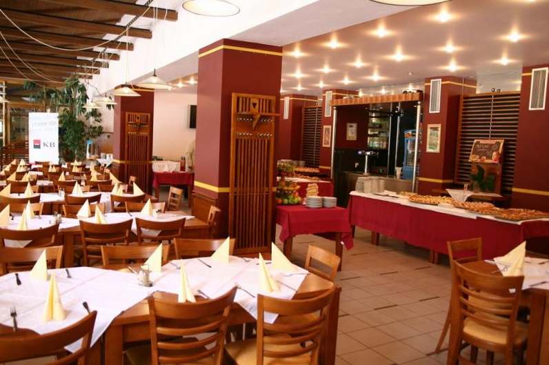 V hotelu je pro hosty připravena restaurace, večerní restaurace – piano bar, letní terasy s pravidelným grilováním, výtah, směnárna, internetový koutek, a jiné služby. Účelně a moderně zařízené hotelové pokoje jsou vždy s vlastním WC, sprchou, telefonem, rádiem a sat-TV. Hotel má vlastní parkoviště.