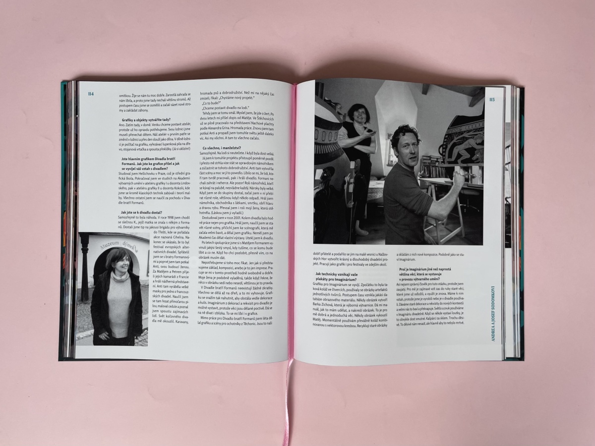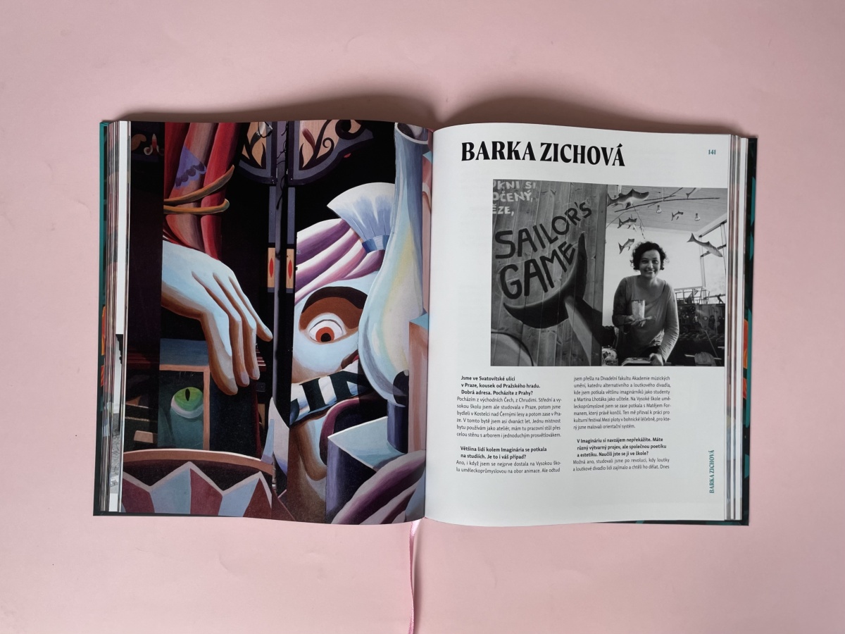 Kniha propojuje vizuální podívanou s texty, které zvou do zákulisí tvorby. Skládá se z rozsáhlého rozhovoru s Matějem Formanem a z rozhovorů s umělkyněmi a umělci například s Andreou a Josefem Sodomkovými, Renatou a Martinem Lhotákovými, Terezou Komárkovou, Pavlem Mackem a dalšími. Čtenáři nahlédnou do jejich originálních domovů, vzpomínek i životů a dozví se více o jejich tvorbě. Po přečtení upřímných zpovědí bude mít nejeden čtenář chuť vzít do ruky dláto, barvy a štětce a začít tvořit a nebo alespoň s knihou v ruce rozpoznávat na výstavě Imaginárium rukopisy jednotlivých umělců. Rozhovory připravil, stejně jako pro katalog výstavy v Kasselu, známý český novinář a autor Jan Šícha.