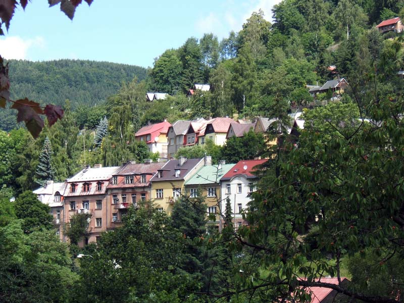 Nedaleko města vystupuje mohutný hřbet hory Klínovec.