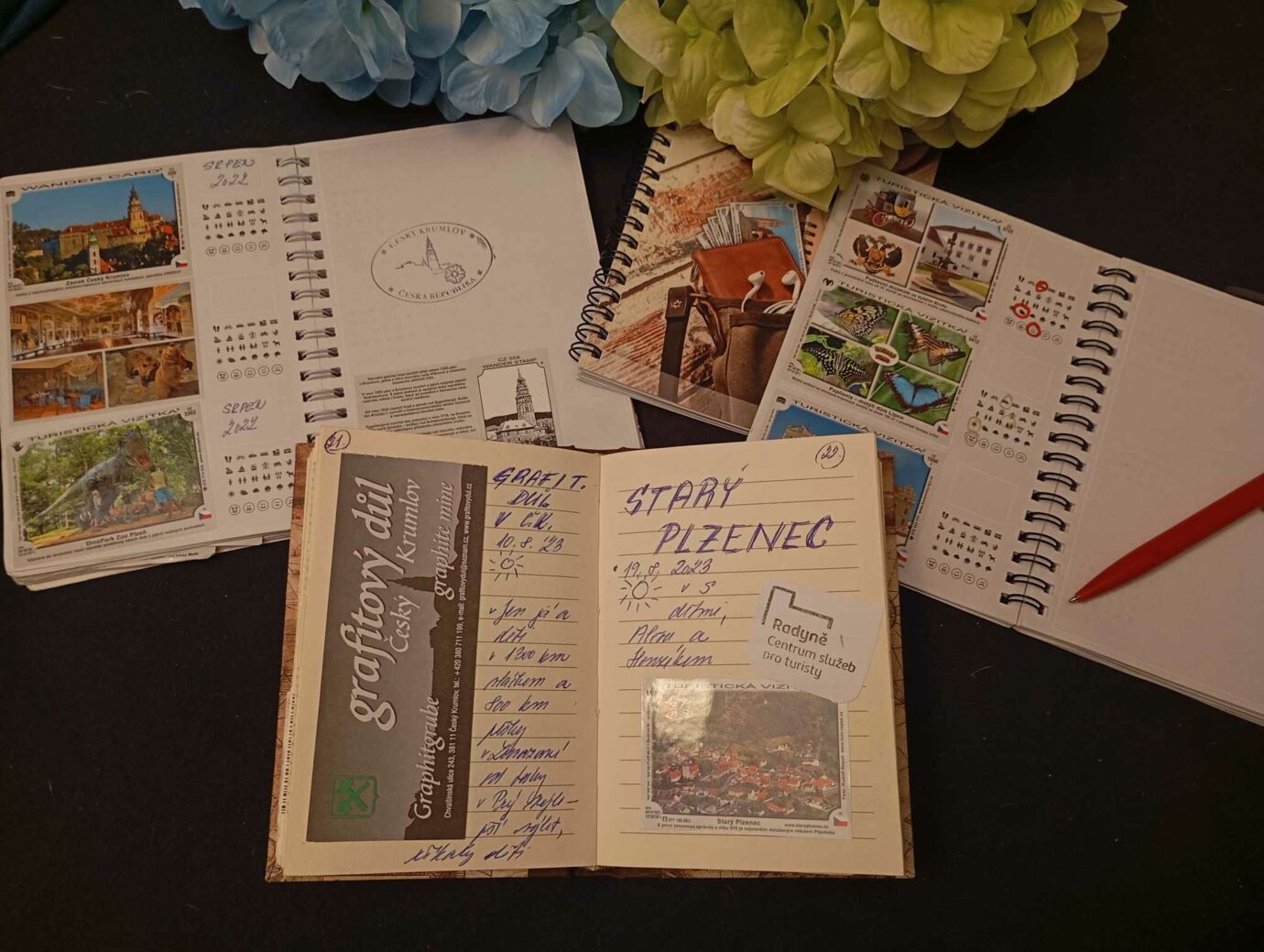My jsme zpočátku využívali zmíněný Turistický deník určený přímo na turistické vizitky. Já jsem ale po čase zjistila, že mi více vyhovuje vlastní sešit s prázdnými listy, kam více napíšu a můžu si i tu a tam něco nakreslit. V dnešní době už ale cestovních a turistických deníků existuje celá řada. Proto uvažuji, že až děti dolepí ten současný, pořídím jim nějaký „veselejší“.