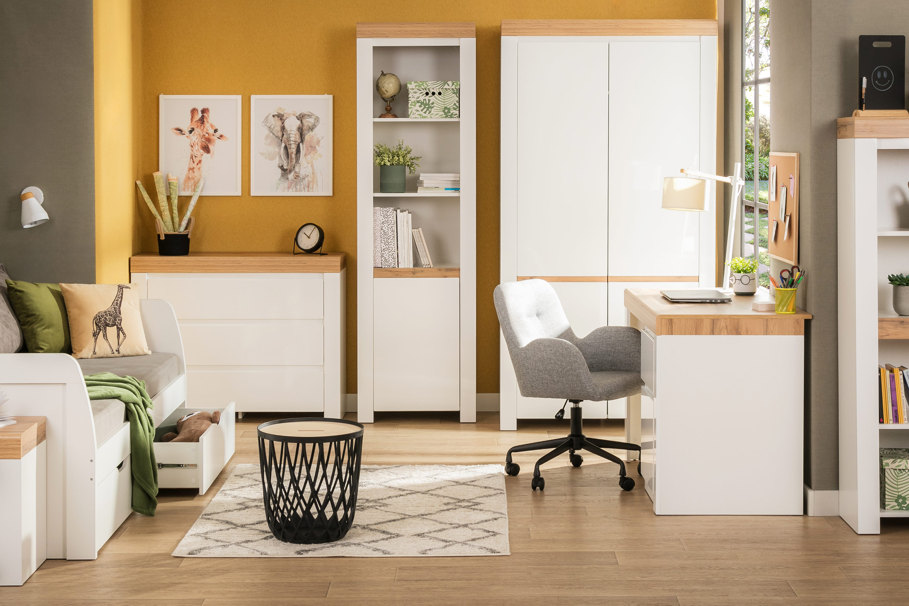 Univerzálním nábytkem do dětského pokoje, který lze časem rozšířit nákupem nových prvků, je modulární nábytek. Při výběru komody, skříně a šatní skříně vsaďte na univerzální řešení, která budou užitečná několik let. Možnosti, které lze přizpůsobit měnícím se potřebám batolete, umožňují vyhnout se časté výměně vybavení. Modulární nábytek je praktickým řešením, které si v interiérovém designu získává stále větší oblibu. V případě dětského pokoje poskytuje mnoho výhod, jako je multifunkčnost, flexibilita a úspora místa. Modulární nábytek lze přizpůsobit různým funkcím a potřebám. To z něj činí ideální volbu, pokud potřebujeme flexibilitu při uspořádání prostoru pro naše nejmenší. Možnost měnit uspořádání nábytku umožňuje jeho snadné přizpůsobení měnícím se potřebám dítěte. To je důležité zejména pro batolata, která rostou a mění své zvyky a preference. Modulární nábytek je ideální pro malé prostory. Můžeme optimalizovat jeho umístění z hlediska prostoru, což je v dětském pokoji mimořádně praktické. Díky modulární konstrukci můžeme vytvářet vlastní kombinace nábytku podle individuálních potřeb a stylu. Komoda, šatní skříň a toaletní stolek nám umožní vytvořit pro naše děti jedinečný prostor. Modulární nábytek lze snadno přestavět nebo rozšířit o další prvky. To je skvělé řešení, pokud potřebujeme přizpůsobit pokoj měnícím se potřebám dítěte. Pokud se rozhodneme pro neutrální design a tlumené barvy, bude nábytek nadčasový a bude se hodit do pokoje malého dítěte i teenagera.