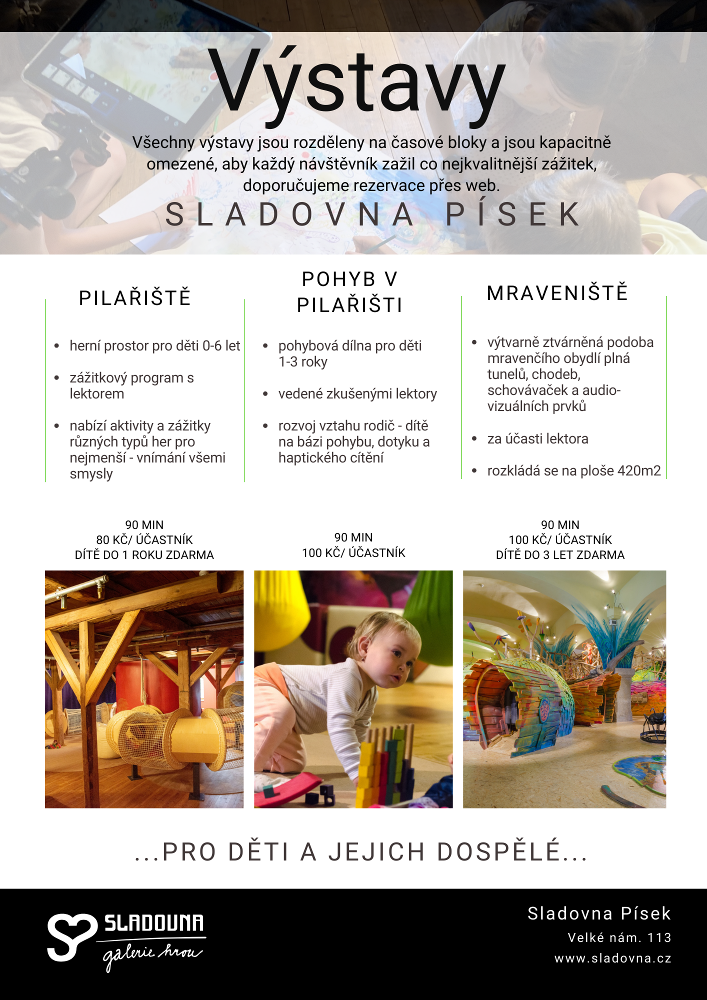 Já Město – interaktivní objevná výstava na ploše 420 m2, kde se děti mohou těšit na zážitkový program s lektorem. Délka 90 min, 100 Kč/ účastník, dítě do 3 let zdarma.