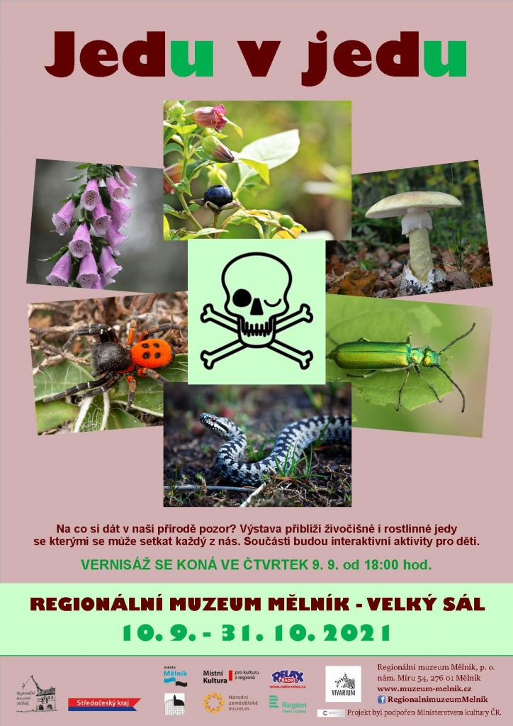 Výstava „Jedu v jedu“ seznámuje návštěvníky s rostlinnými i živočišnými jedy, se kterými se můžeme setkat ve svém okolí – ať už v přírodě nebo ve městech či přímo u nás doma. Zaměřuje se i na méně známé jedovaté rostliny a živočichy a představuje mnohé zástupce naživo…Čeká na Vás akvárium s jedovatými rybami, vypěstované „jedule“ durman, rulík nebo blín a terárium s našimi jedovatými pavouky (stepníkem a zápřednicí), mlokem a ropuchou.