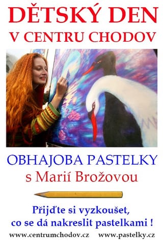 V pátek 1. 6. 2012 můžete navštívit Pastelkový dětský den v Centru Chodov na Čtvercovém náměstí. Marie Brožová zde po celý den od 10.00 do 19.00 bude ve svém otevřeném ateliéru pracovat na obraze s názvem „Anděl lenošení“.