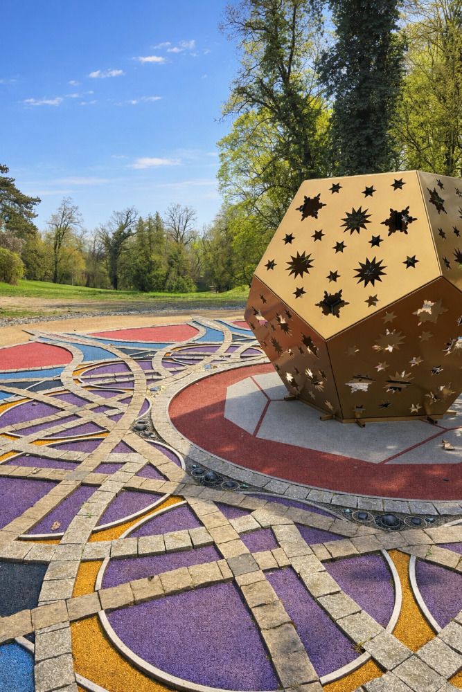 Mezi nejzajímavější patří například Královský labyrint, inspirovaný dobou Karla IV. Z ptačí perspektivy připomíná barevnou vitráž nebo perský koberec, zblízka pak odhalí detaily včetně skleněných „drahokamů“ v podlaze. Oblíbené je také Palisádové bludiště, které má tvar obří stopy a baví děti skluzavkou na jeho konci.