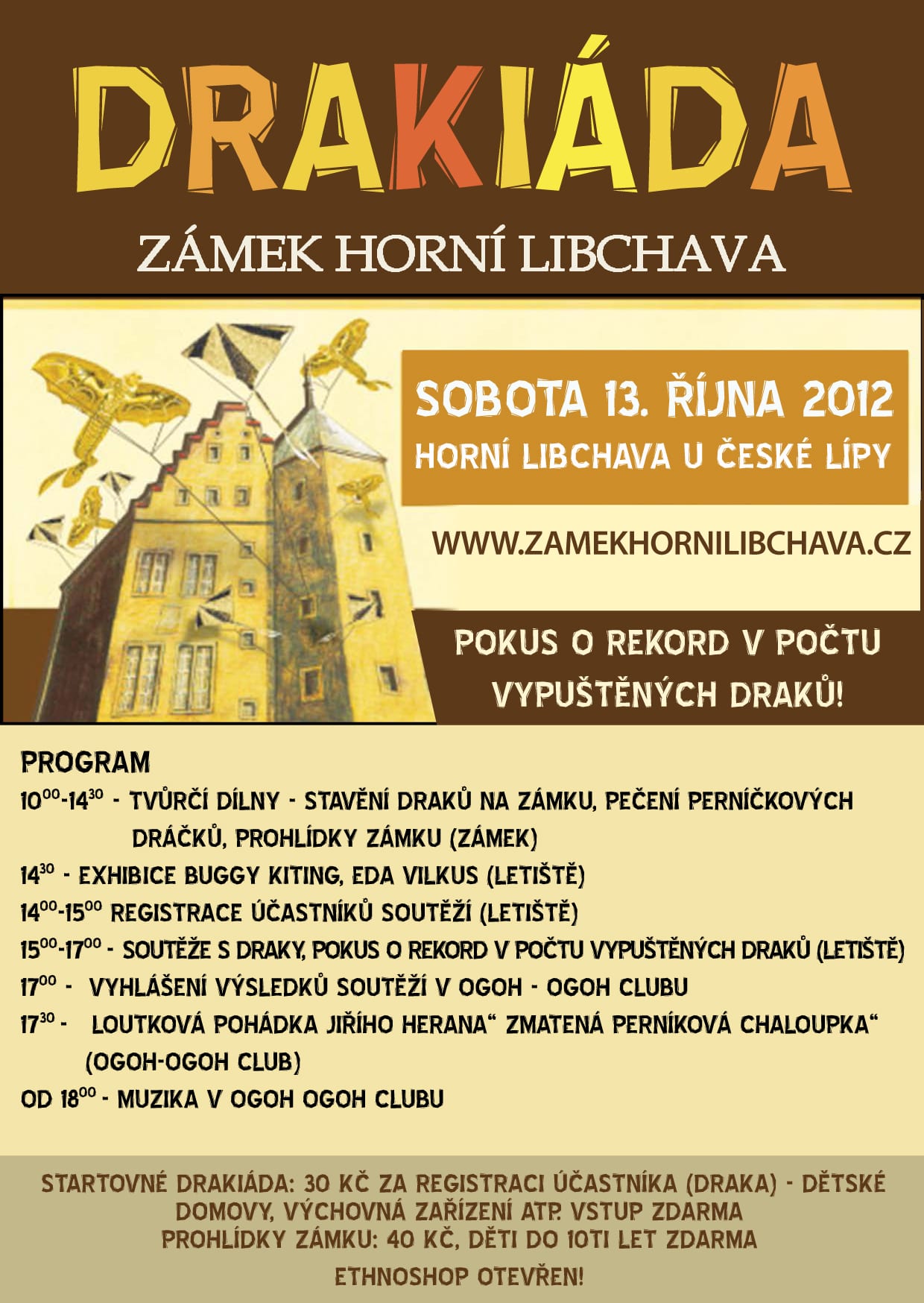 Přijměte srdečné pozvání na „DRAKIÁDU“, která se koná v sobotu 13.října 2012 na letišti i na zámku v Horní Libchavě u České Lípy.
