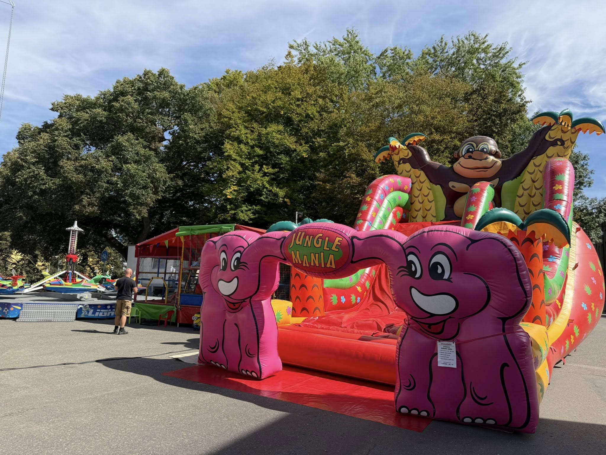 Dětské: Dětský svět, Vláček – Lucky Train, Malý řetízkový kolotoč, Skluzavka Jungle Mania, Jumping trampolíny, houpačky