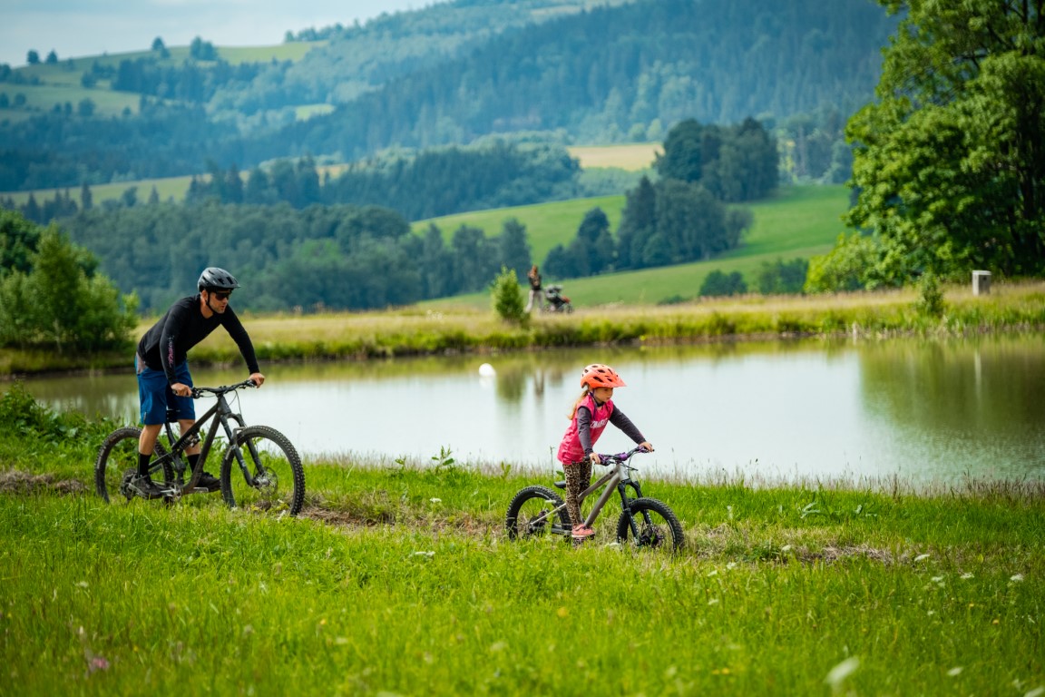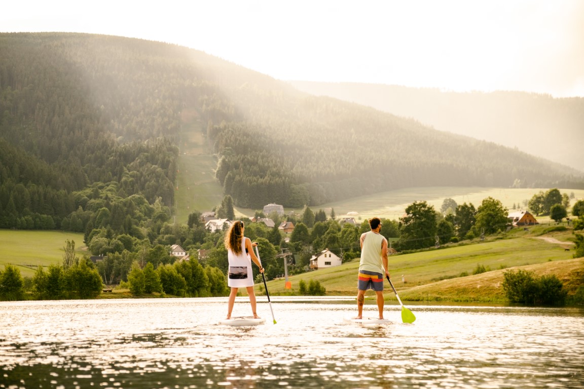 Letní osvěžení? Stačí pár kroků a jste u rybníka Úžas. Ten nabízí ideální podmínky pro koupání, paddleboardy, lodičky, skluzavku z mola i opalování na trávě. Občerstvení s domácí limonádou, zmrzlinou nebo pivem ocení všichni – děti i dospělí. Navíc se u rybníka pořádají různé aktivity a najdete tu i ohniště pro večerní posezení. Pokud to není zrovna na koupání, v létě si tu užijete turistické stezky s úchvatnými výhledy na Jeseníky, desítky kilometrů cyklotras a trailů, bobovou dráhu ve Stříbrnicích nebo rozhlednu na vrcholu Štvanice. Pro malé děti jsou tu trasy vhodné pro koloběžky i rodinný trail, který vás provede okolím a dovede zpět k rybníku.