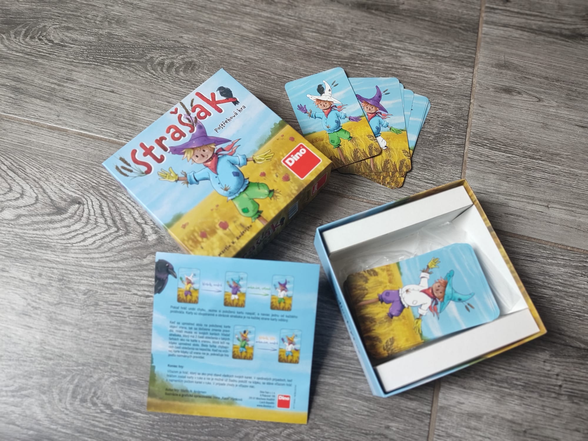 Další úžasná postřehovka, kterou máte odehranou do deseti minut je Strašák. Cílem hráčů je zbavit se karet v ruce. Karty jsou oboustranné a na každé straně jsou vyobrazeni strašáci. Každému z nich vždy chybí jeden kousek oblečení v jedné z pěti barev. Jde o to co nejdříve přiložit kartu, na které má strašák právě chybějící kus oblečení ve správné barvě.