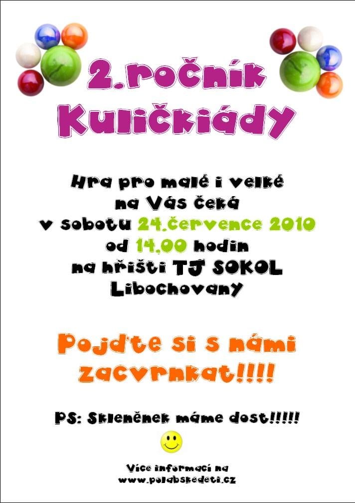 V sobotu 24.7.2010 proběhne na hřišti TJ Sokol Libochovany 2.ročník Kuličkiády.