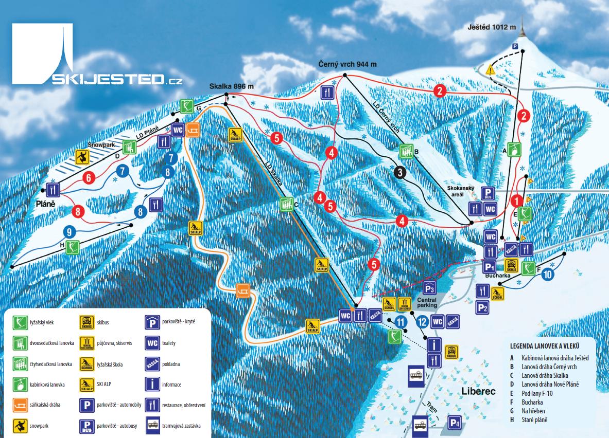 Skiareál Ještěd je moderní lyžařské středisko v dosahu liberecké městské dopravy s vynikající dopravní dostupností. (Český Innsbruck).