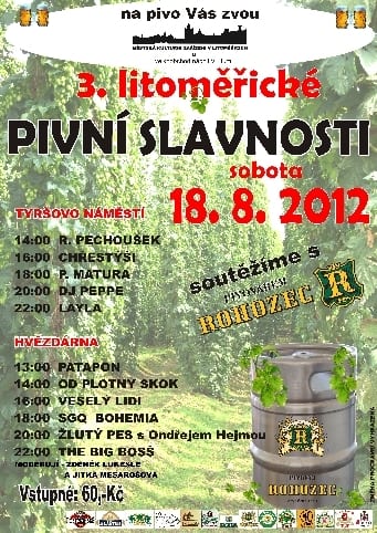 Srdečně zveme všechny na 3. LITOMĚŘICKÉ PIVNÍ SLAVNOSTI, které proběhnou 18.8.2012 od 13 hod na Tyršově náměstí a na Hvězdárně.