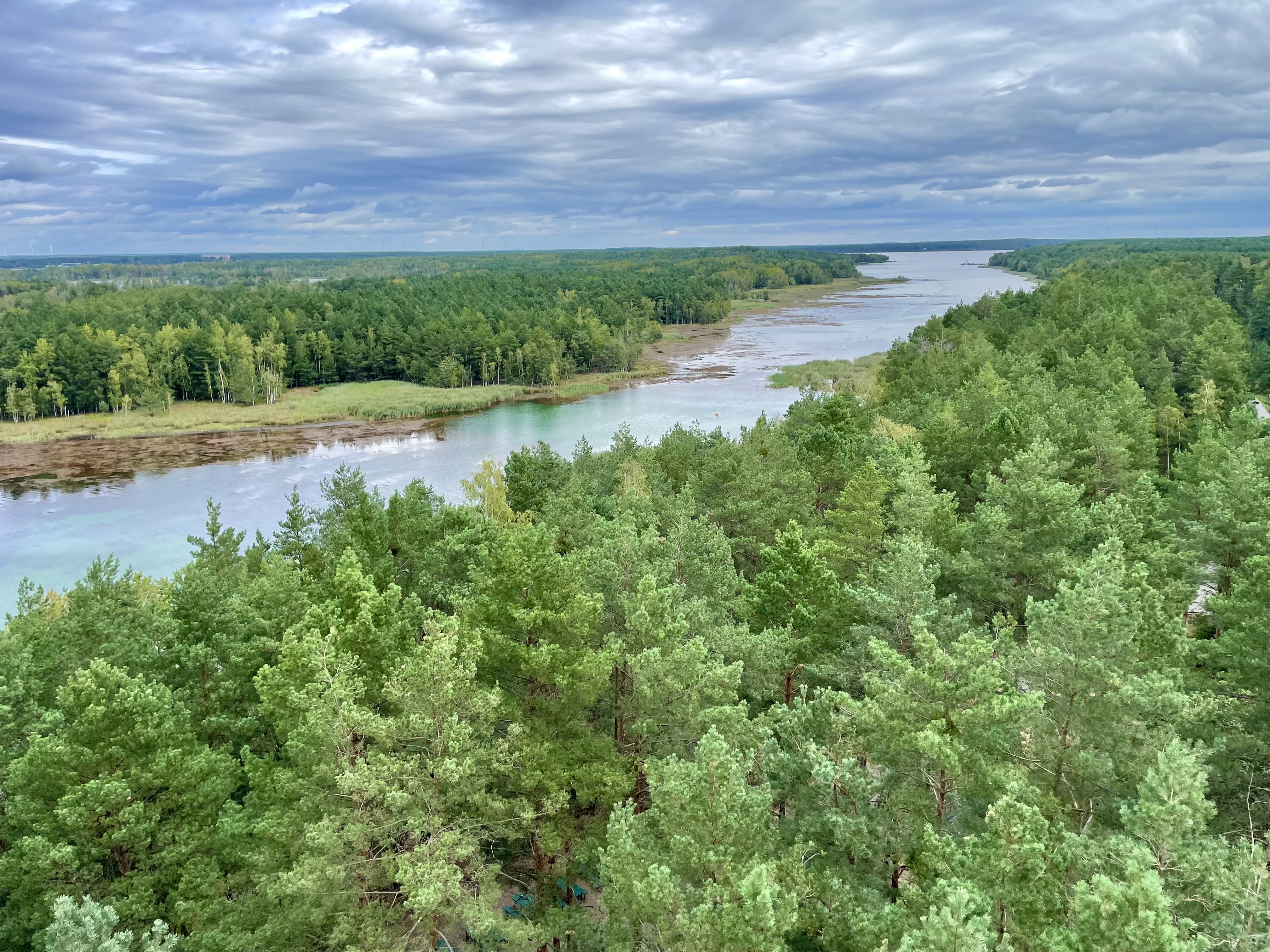 Výhled z rozhledny na jezero Geierswalder See. Foto: ©Šárka Kobrynová