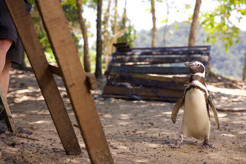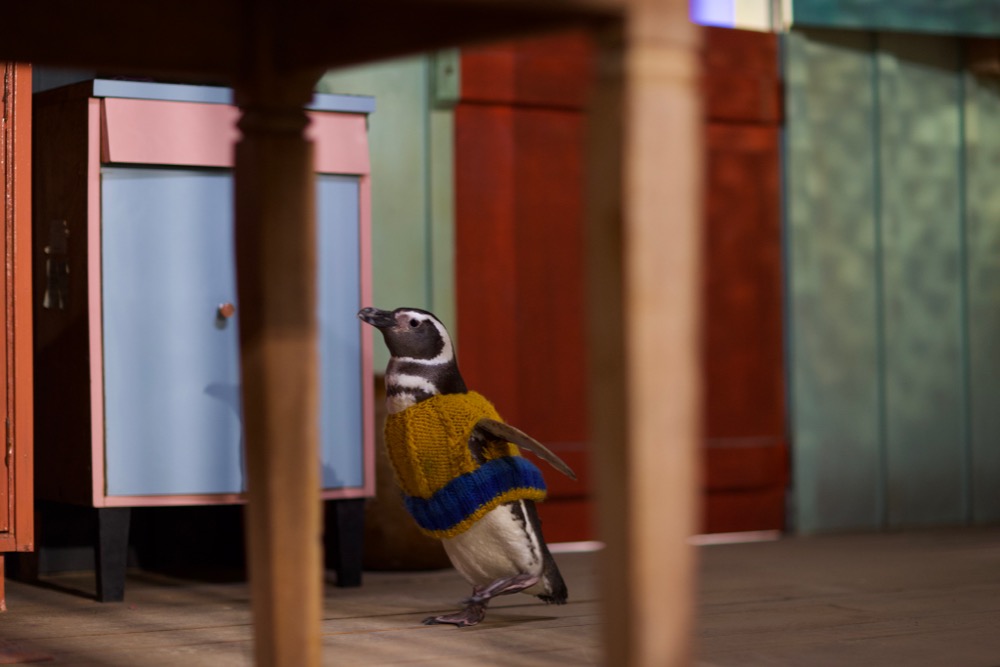 Herci, včetně Jeana Rena, měli samozřejmě jen mizivou představu o tom, jaké to bude pracovat s tučňáky. Když se Reno poprvé dotkl jednoho z deseti tučňáků, kteří si zahráli DinDima, bylo to pro něj zjevení. „K tučňákům se musíte přibližovat velmi pomalu a opatrně, dokud vás nepoznají. Nejvíce vás na první pohled překvapí, že když se jich dotknete, jsou tak vřelí, skoro jako člověk, jako mládě. Myslím, že to nečekáte, protože jsou to ptáci, ale nemůžete si pomoct a reagujete na to,“ popsal své bezprostřední pocity Jean Reno a ještě prozradil: „Moc jsem si je užil. Pochopitelně to jsou skutečná divoká zvířata, ne pohádkové postavy, takže si dělají, co chtějí, a vy to musíte akceptovat. Jsou opravdu obdivuhodní – malí, ale silní, houževnatí, schopní a odhodlaní chránit své rodiny.“