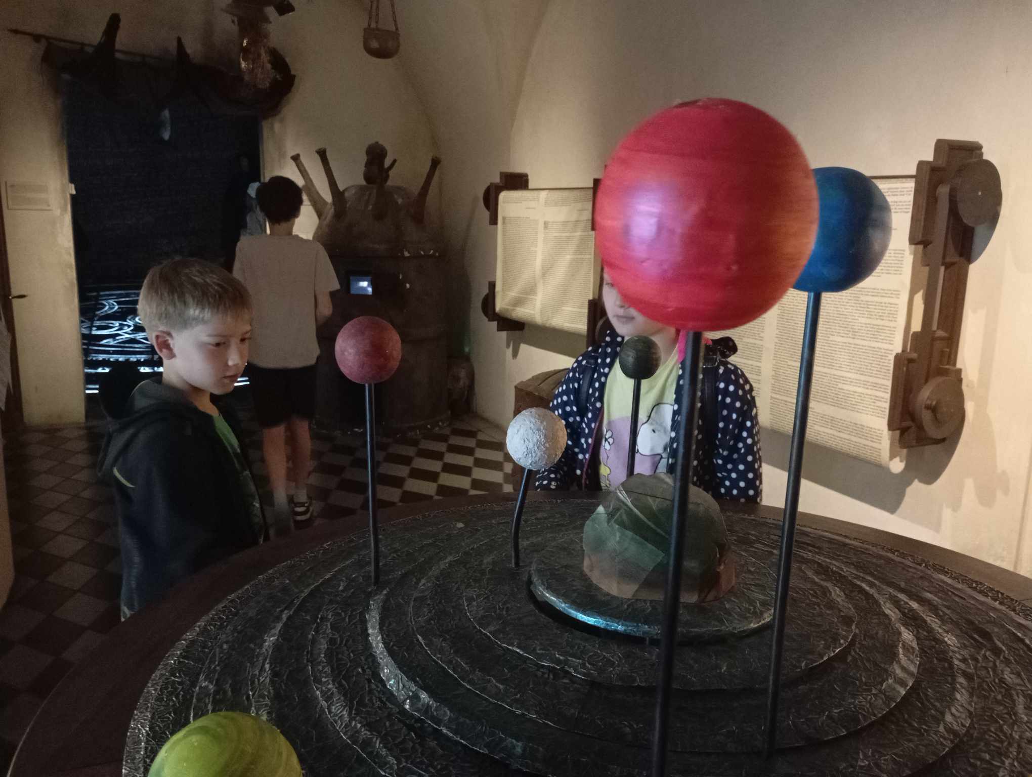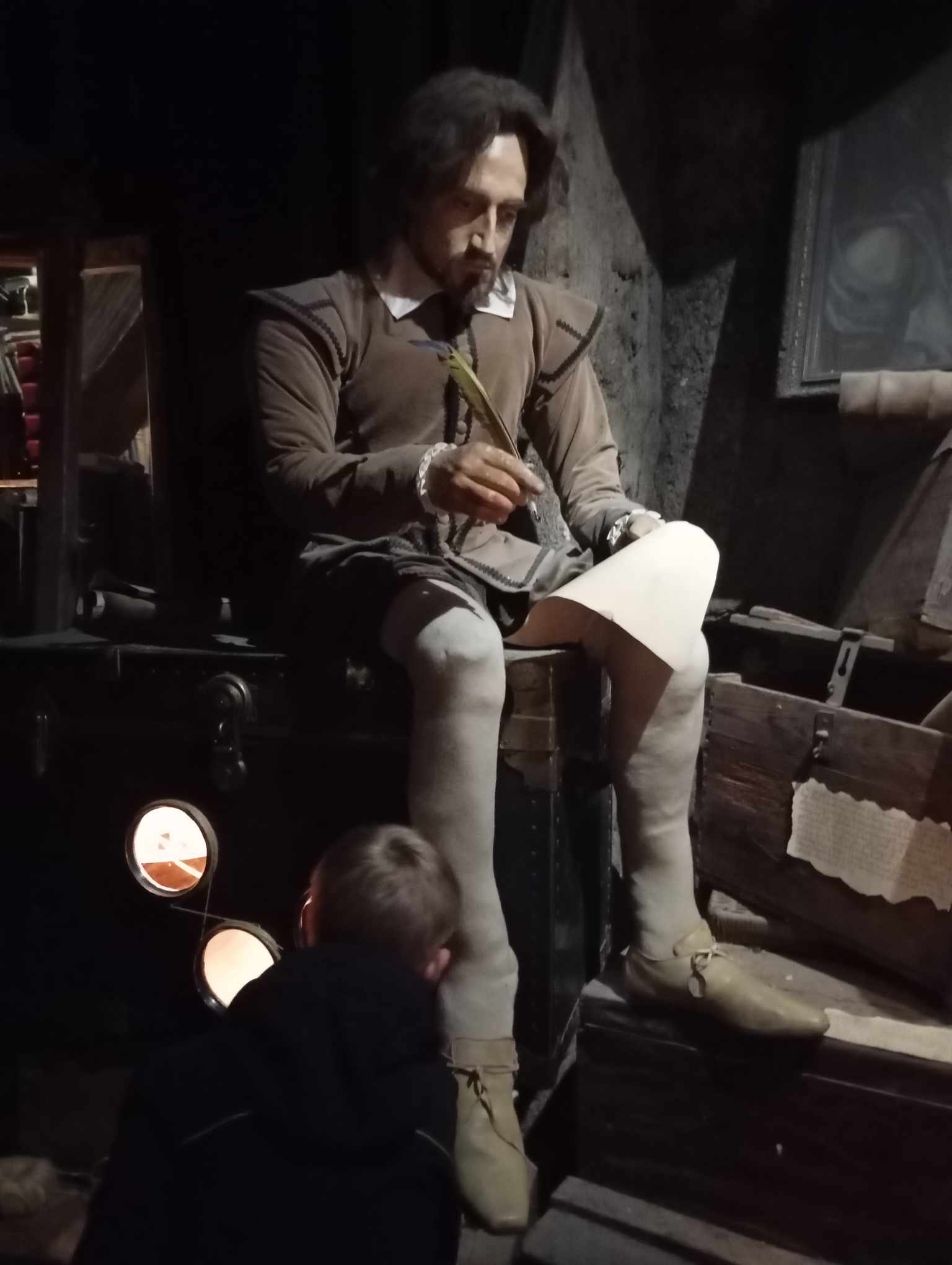 Průvodce vypráví vtipně, poutavě, a dokáže výborně zaujmout i malé návštěvníky. My jsme se na výstavě mnohokrát zasmáli a pobavili. Pro děti je výstava zajímavá i díky tomu, že mohou nakouknout do různých krabic ukrývajících např. miniaturu divadla Globe nebo tajemného ještěra. Také si mohou vyzkoušet, jak fungovalo dmychadlo na oheň a že to nebyla žádná legrace.
