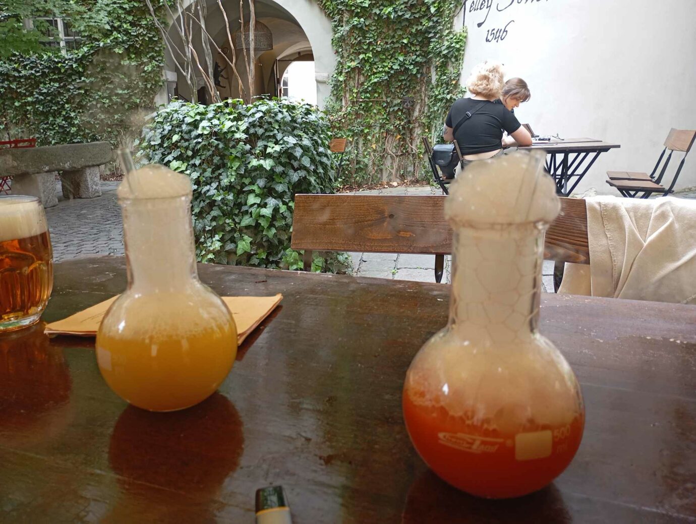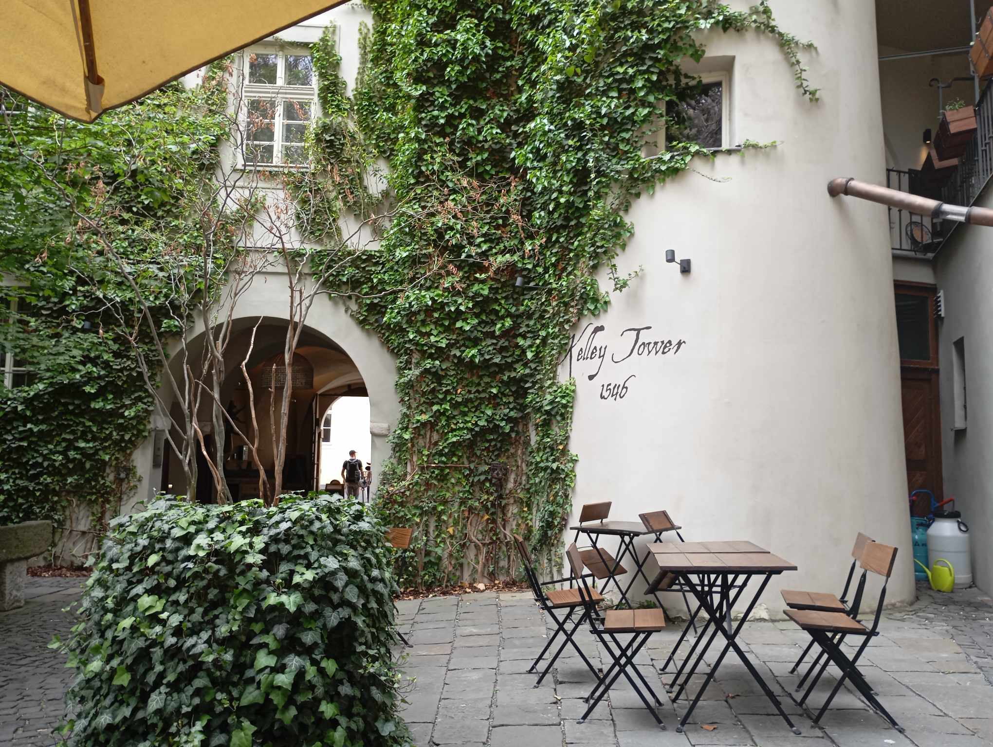 Se vstupenkou získáte v restauraci Kellyxír na levé straně dvorku 10% slevu. Dát si můžete chutné jídlo, dorty, ale především koktejly – takzvané elixíry, které budou bavit i chutnat. Alko i nealko koktejly vám donesou v baňkách, v nichž to bublá a doutná. Pít se musí skleněným brčkem, neboť k efektům je používán suchý led. Pobaví vás i nápisy (nejen) na tričkách obsluhy, které sdělují, že vše je testováno na lidech. Doporučuji tuto hospůdku alchymistů navštívit, protože perfektně doplní zážitek spojený s muzeem. Bez pořádného elixíru by to zkrátka nebylo ono.