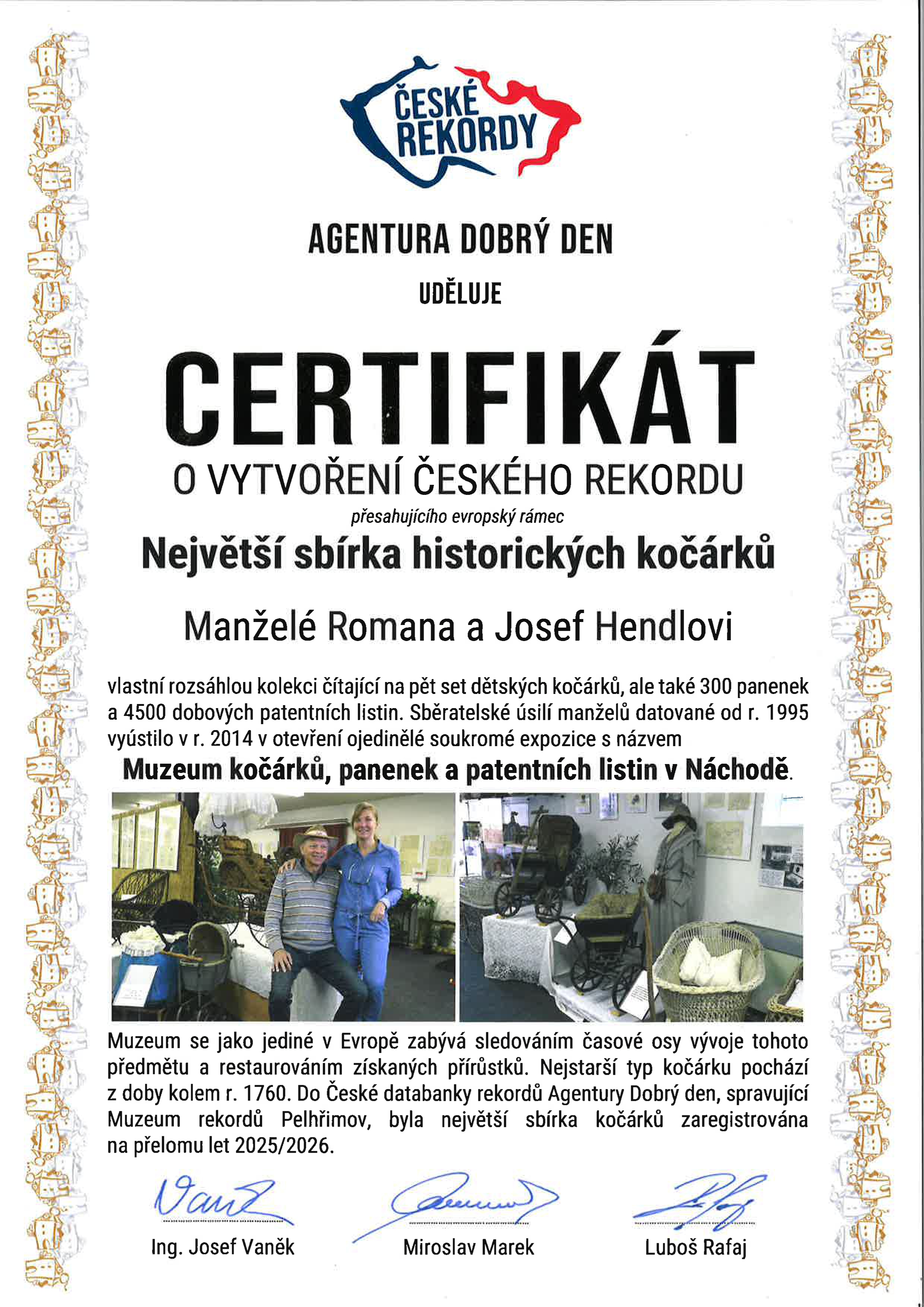 Do České databanky rekordů byla na přelomu let 2025 a 2026 oficiálně zaregistrována největší sbírka dětských kočárků v České republice.