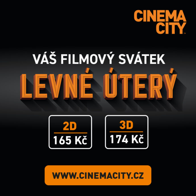 A to není zdaleka jediná akce, kterou si společnosti Cinema City na léto připravila. Pravidelní návštěvníci kina pozor! Úterý se od teď stane vaším filmovým svátkem. Po pauze se totiž opět na všechny pobočky vrací dlouhodobá akce s názvem Levné úterý, kterou můžete využít každý týden v úterý, jak již název nepovídá. Výhodné vstupenky jsou za jednotnou cenu 165 Kč za 2D vstupenku a 174 Kč za 3D vstupenku. Vstupenky můžete tradičně koupit na pokladnách kin nebo na oficiálním webu.