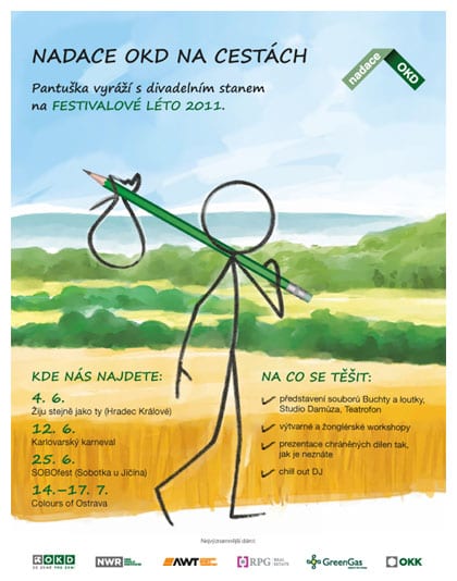 Ostrava (30. května 2011) – Nadace OKD a její maskot Pantuška se chystají na velké letní putování po českých a moravských akcích a hudebních festivalech. Připojí se k nim divadelníci, jež v nadačním stanu pobaví děti, a především zdraví i hendikepovaní pracovníci chráněných dílen, kteří budou na akcích vyrábět například svíčky z včelího vosku nebo hudební nástroje. Návštěvníci mohou dílny podpořit zakoupením jejich výrobků.