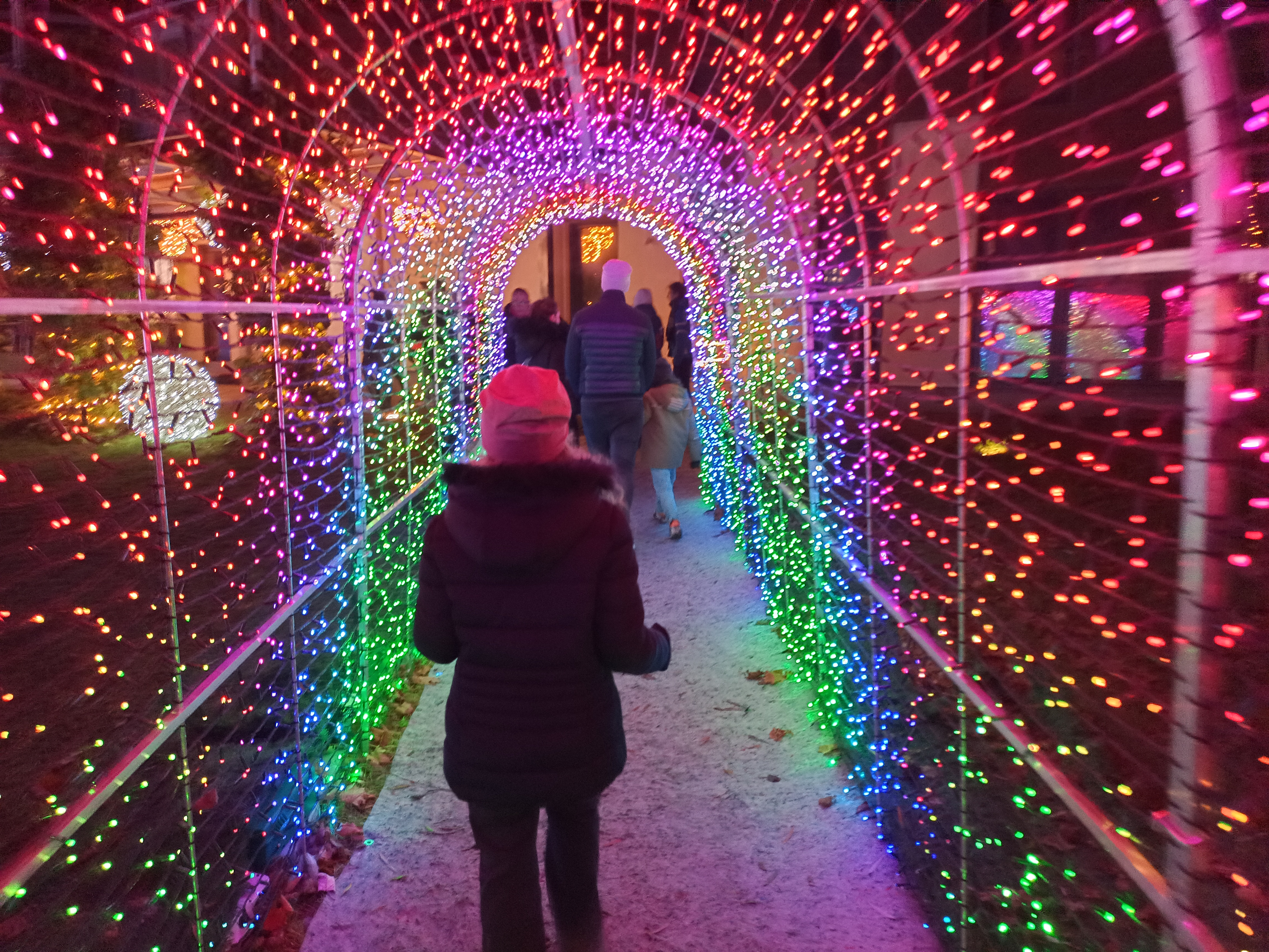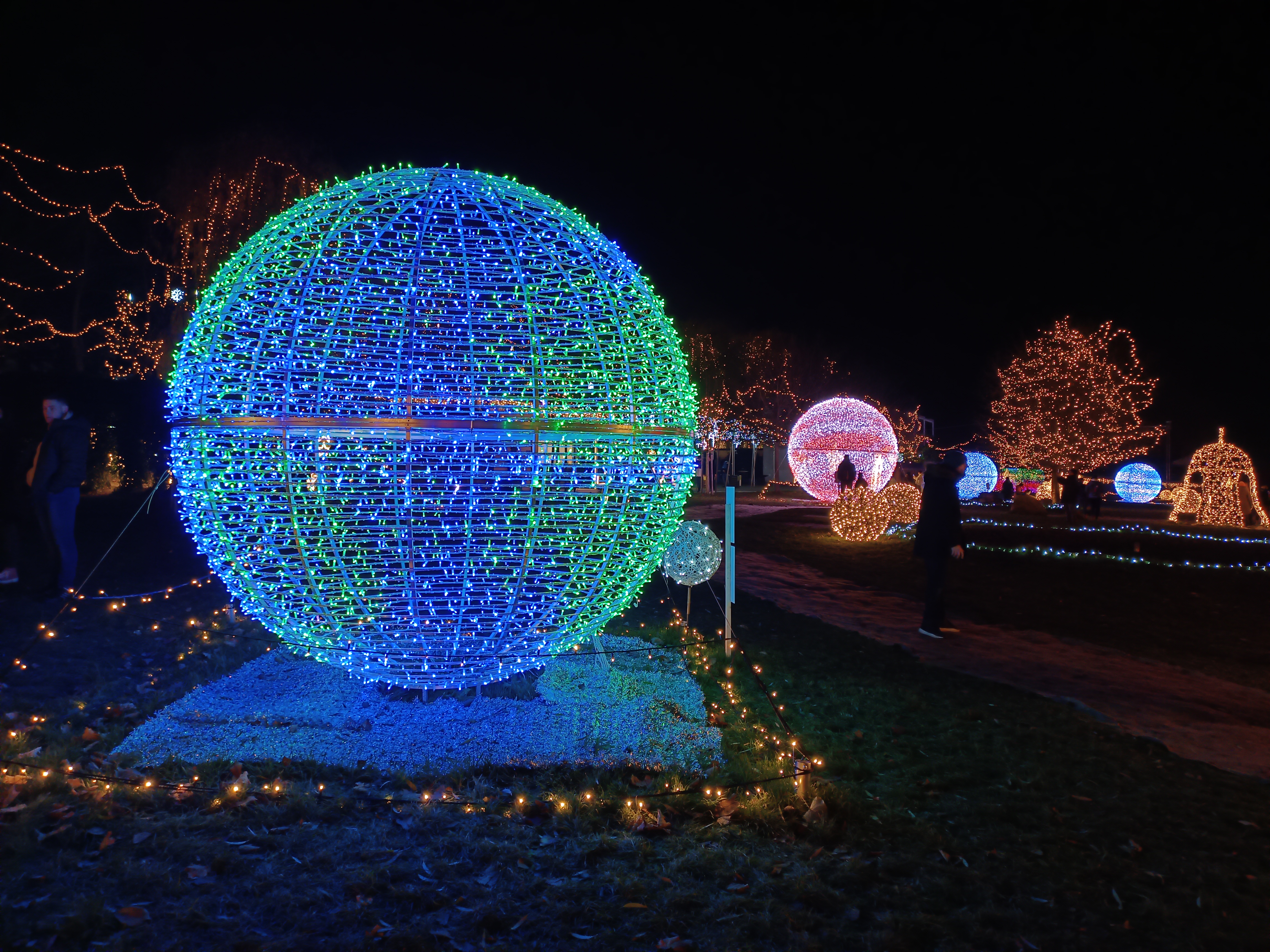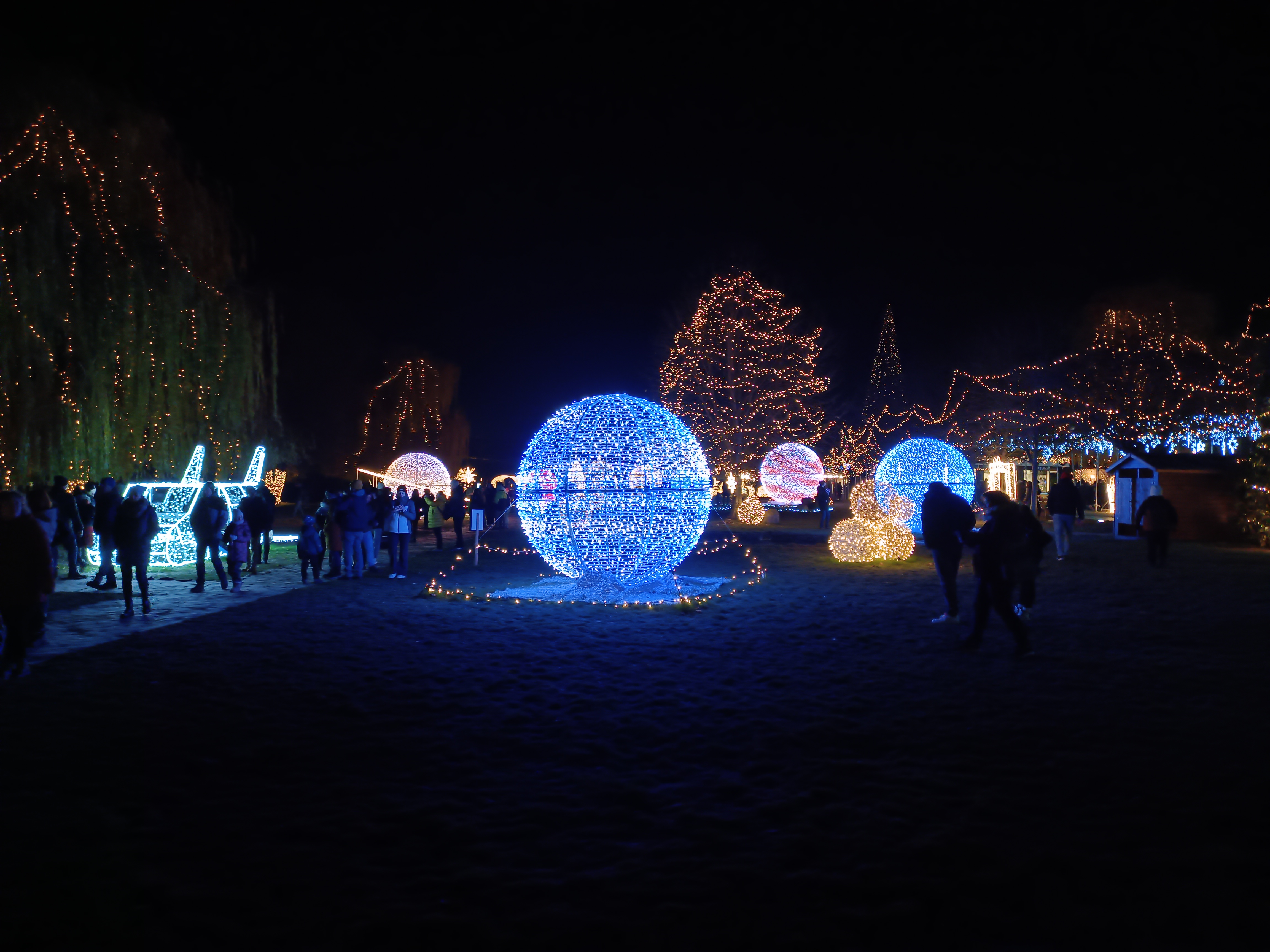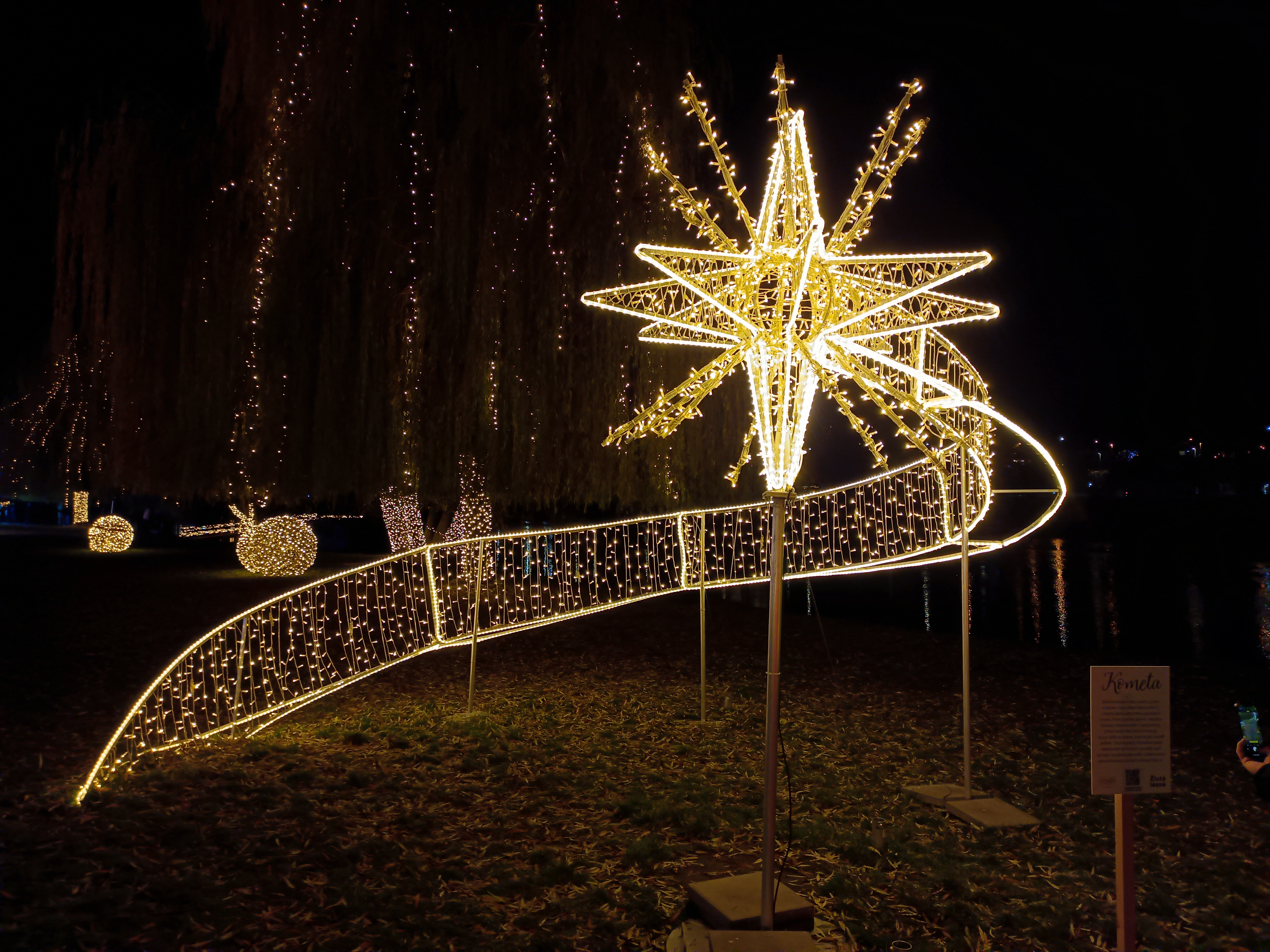Žluté lázně velmi dobře známe, bylo tedy zajímavé je vidět v „jiném světle“. Park byl přeměněný na zářící svět plný barevných světelných instalací, které znázorňovaly hvězdnou galaxii, sluneční soustavu, planety i samotné raketoplány a kosmonauty. Děti byly nadšené a běžely od jednoho světelného objektu ke druhému a ochotně pózovaly na fotky. Atmosféru dotvářela příjemná hudba, která nás vtáhla do kosmického dobrodružství. Po parku jsme se pohybovali po vyznačených chodníčcích, pohodlně se tu dá jezdit také s kočárkem.