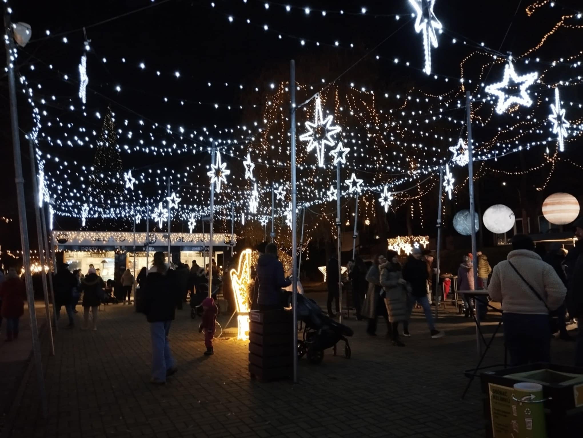Kromě vizuálních zážitků nabízel park také zajímavé vzdělávací prvky. Děti si mohly přečíst informace o planetách a vesmíru, což jim přiblížilo některé vesmírné záhady. Povídali jsme si o tom, co je na noční obloze nejvíc fascinuje, až jsme byli překvapeni, kolik toho už vědí. Krásně se nám povídalo v odpočinkové zóně, kde jsme si dali něco malého k jídlu a zahřáli se teplým čajem. U dětí vyhrál párek v rohlíku, dospělí si dali místní skvělou ¼ pizzy. Třešničkou na dortu bylo svezení se na dřevěném kolotoči, který se nachází u hlavního vchodu do Žlutých lázní, ale není součástí světelného parku.