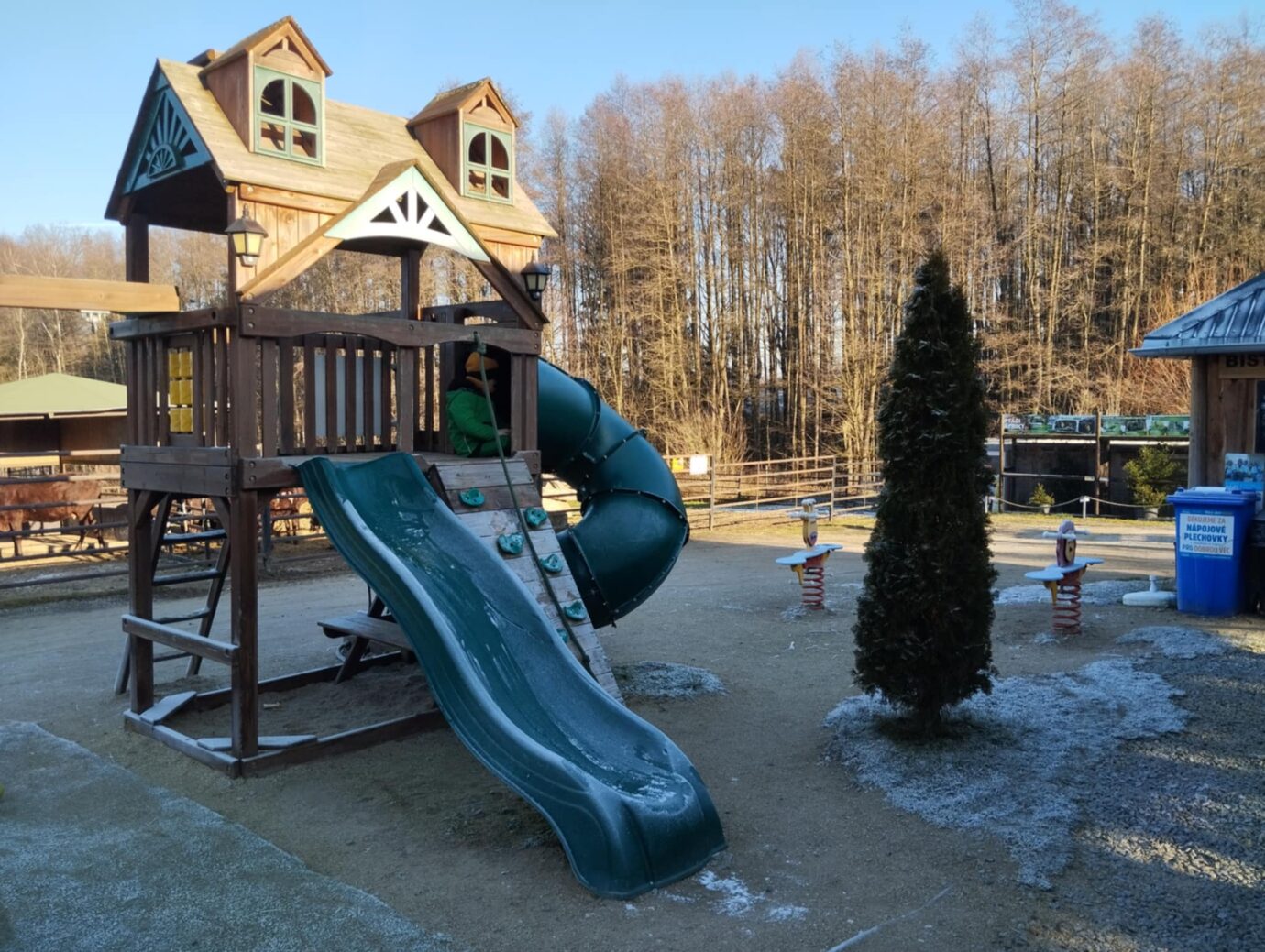 V areálu najdete dětské hřiště, které jsme s dětmi velice ocenili. Na dětském hřišti je pískoviště, my jsme využili velkou prolézačku a houpačky ve tvaru zvířat. Starší děti si zde mohou otestovat své znalosti na naučné stezce Zvířata našich lesů. Zoo každoročně připravuje různé akce zaměřené na děti.