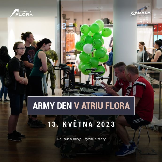 V polovině května se Atrium Flora i přilehlé okolí promění ve vojenskou základnu. Malí i velcí návštěvníci se budou moci na vlastní oči přesvědčit, jak vypadá a funguje nejmodernější a nejzajímavější výbava naší armády. Navštivte nás s celou rodinou a užijte si příjemné chvíle s vojáky.