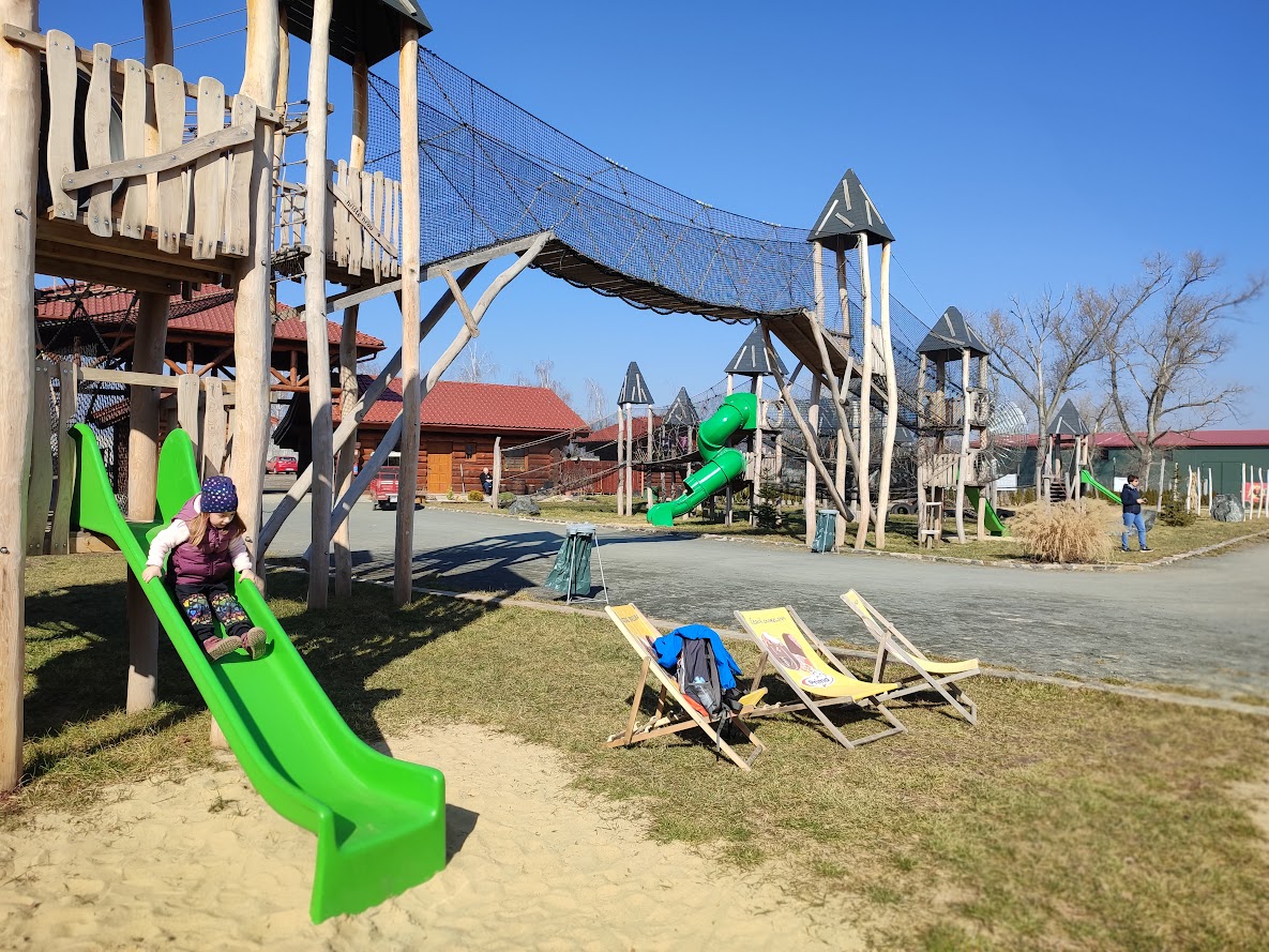 Na děti v parku čeká třípatrový dřevěný hrad plný tunelů, skluzavek a tobogánů. Nechybí lanová centra nebo vzduchové trampolíny. Samozřejmostí jsou houpačky a houpadla, lanovky a pískoviště pro nejmenší návštěvníky. V letních dnech určitě oceníte mlhoviště a za každého počasí možnost zabobovat si na válečkových drahách. V sezóně po parku jezdí v určitých časech také dětský vláček a o víkendech a svátcích je součástí programu také koňská show. Pokud si připlatíte, můžete si den zpříjemnit ještě jízdou na koních nebo dokonce velbloudech.