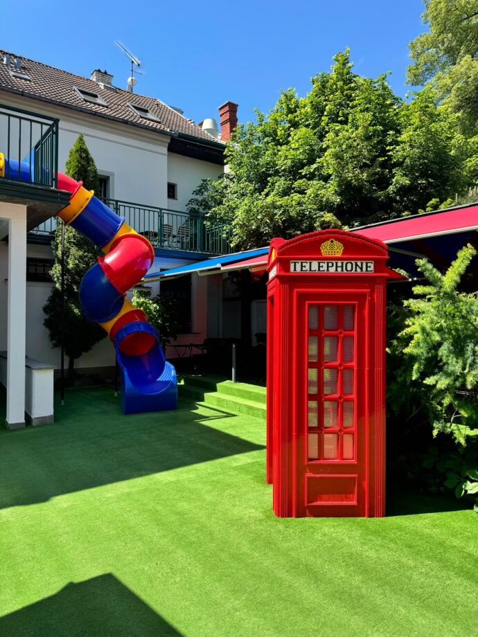 Příjemné jarní počasí si užijete na zrekonstruované zahradě s dětským hřištěm plným atrakcí, které ocení hlavně nejmenší návštěvníci. Děti si užijí tobogán, skluzavky, prolézačky a pískoviště. Tím výčet atrakcí nekončí – nemáte čas zaletět si do Londýna? Tak jsme vám jeho kousek přinesli na naše hřiště. Prohlédněte si typicky červenou, londýnskou telefonní budku v reálné velikosti. Je postavena ze 130 000 LEGO® kostek a její stavba zabrala více než 300 hodin. Víte, že tyto telefonní budky slouží v Británii už 100 let! Je to tak, v roce 2024 slaví 100 let od svého vzniku a zhruba dvě stovky z nich existují dodnes.